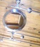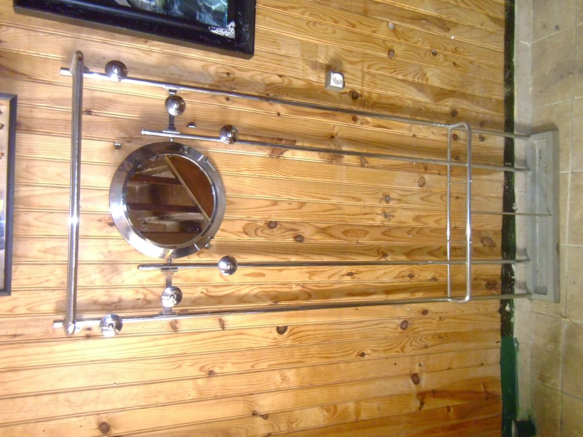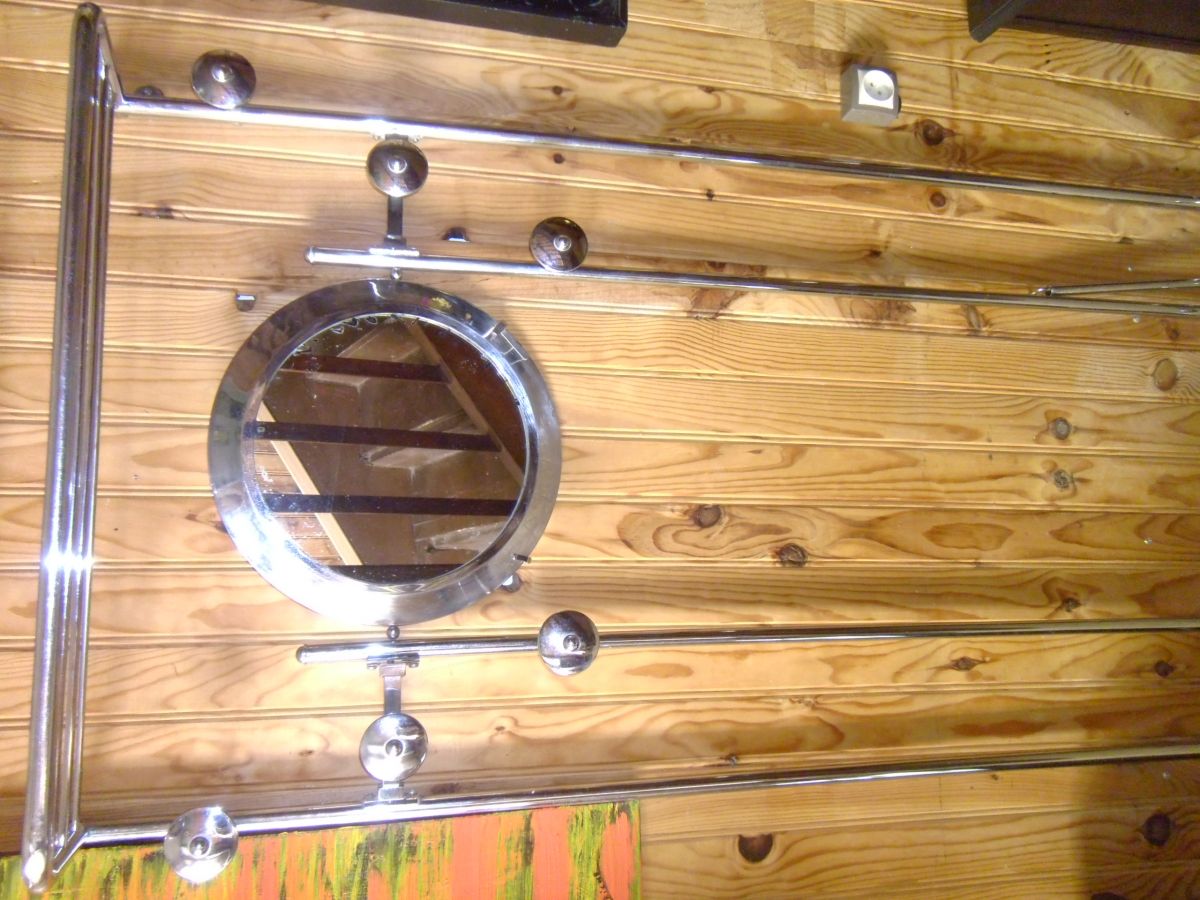 Superbe vestiaire annees 50 en chrome sobre est facile a placer dans le couloir ou une grande entree . avec glace , porte chapeau sur le haut et porte parapluie en bas tres bon etat et tres belle piece qui s'integre tres bien, dans les decos actuelles : dimentions s ::H188 Larg 72 P15 cm ; a prendre sur place