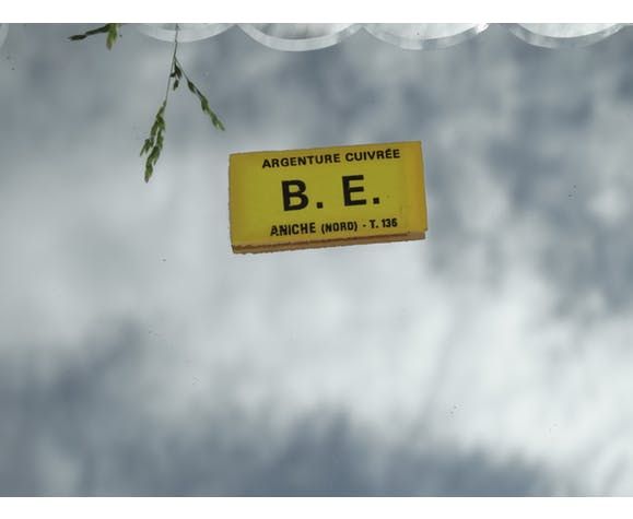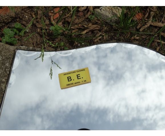 Miroir de courtoisie ancien à poser ou suspendre, argenture cuivrée. Aniche