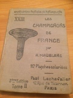 Encyclopédie pratique du naturaliste-Les Champignons de France par A.MAUBLANC en 2 tomes editions Paul LECHEVALIER -12 rue Tournon Paris -editions 1939 ayant appartenu au docteur DUCLERGET -Vieillis par le temps mais en parfait état
