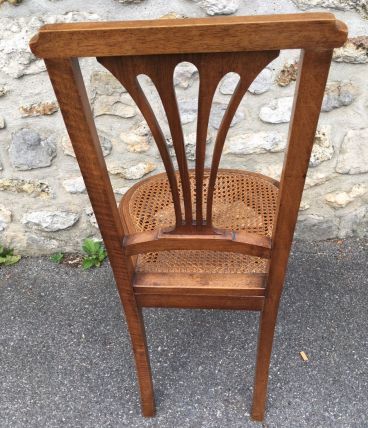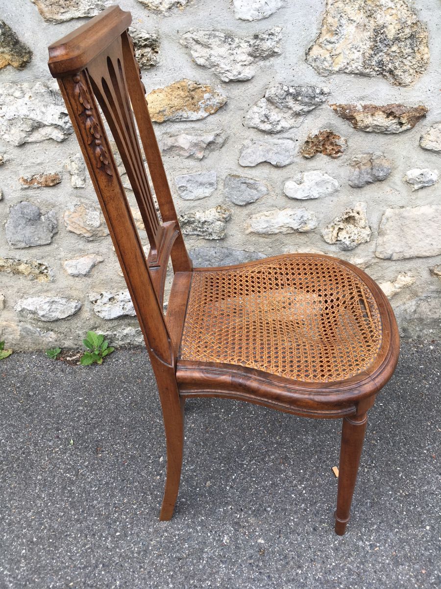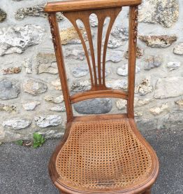 Bois sculpté en bon état. Cannage à refaire. Fin XIXème. Il existe une 2ème chaise avec le cannage intact dans une autre annonce