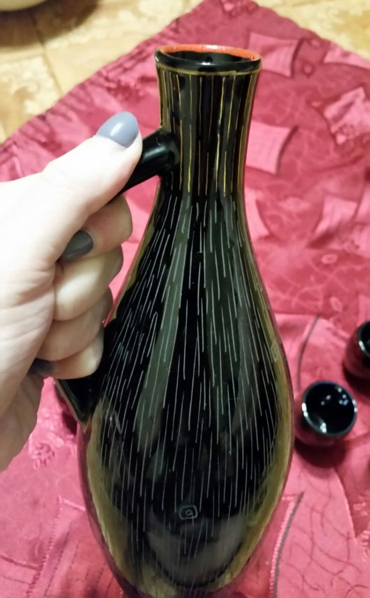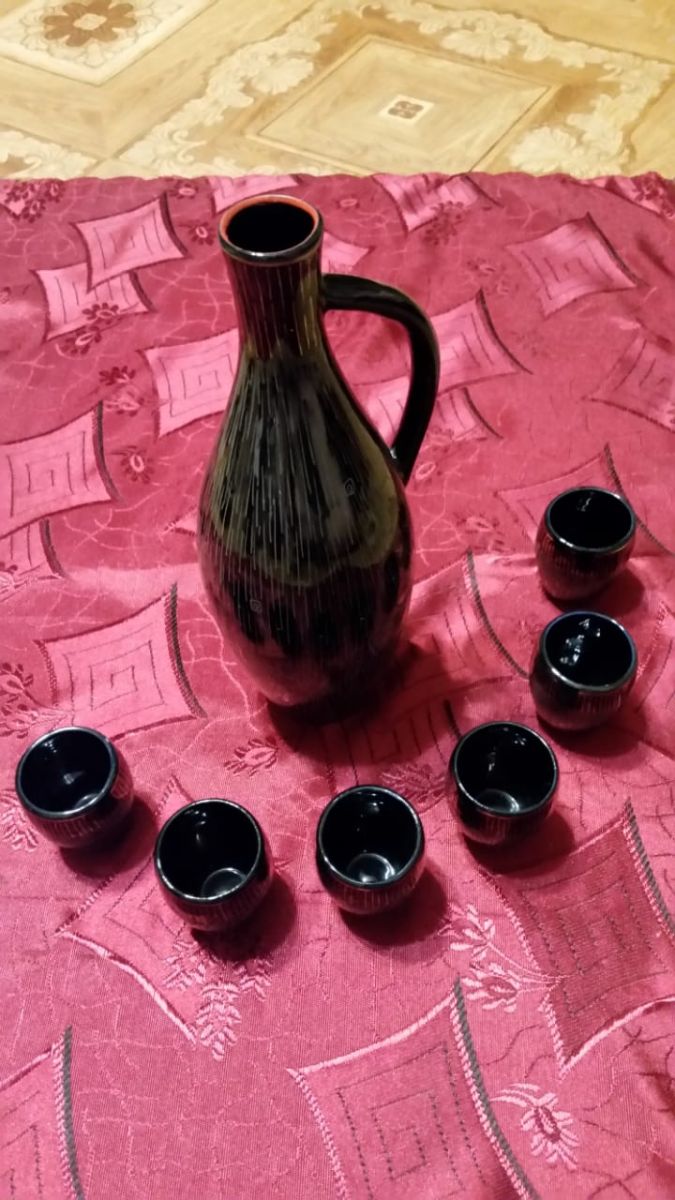 Set composé d'un pichet et de 6 petites tasses en porcelaine. Fabriqué en 1989 en U.R.S.S. Jamais servi.