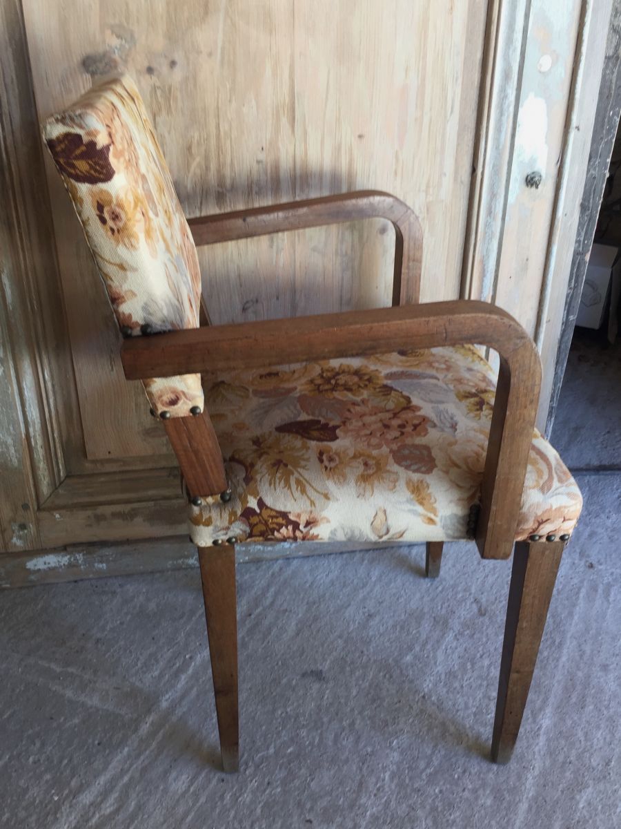 Fauteuil bridge TB état , très tendance tissu fleurs ,