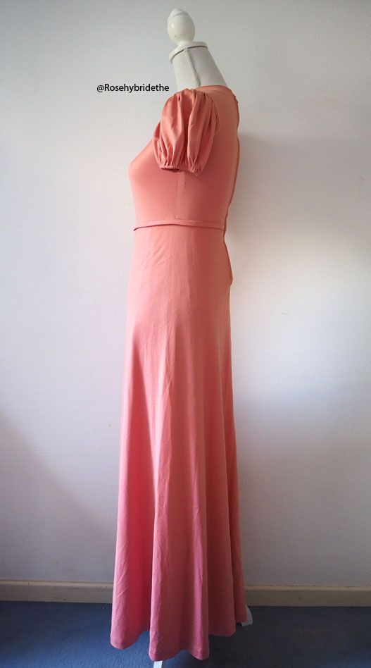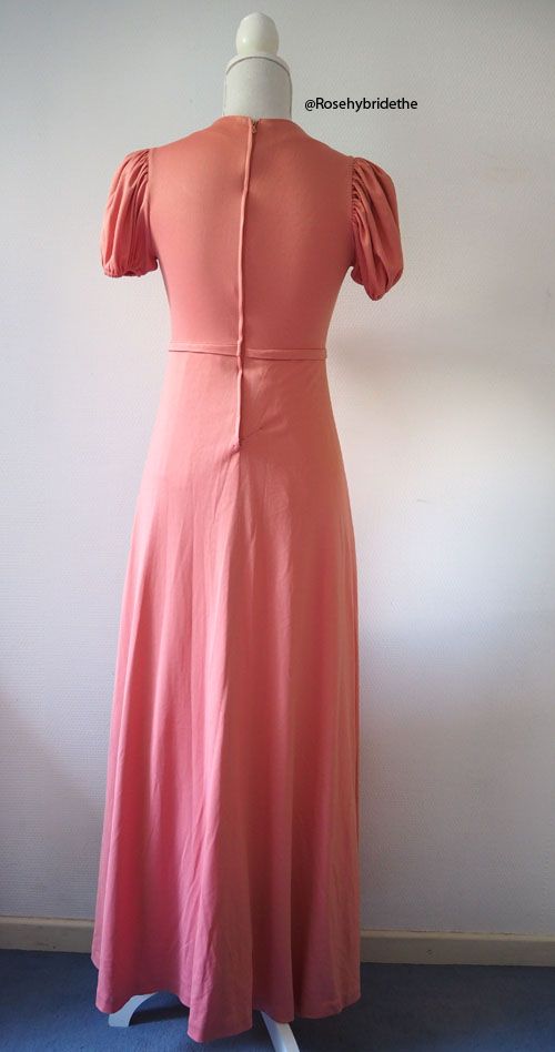 Jolie robe longue rose saumon de la marque RITA BRESSY datant des années 1970.