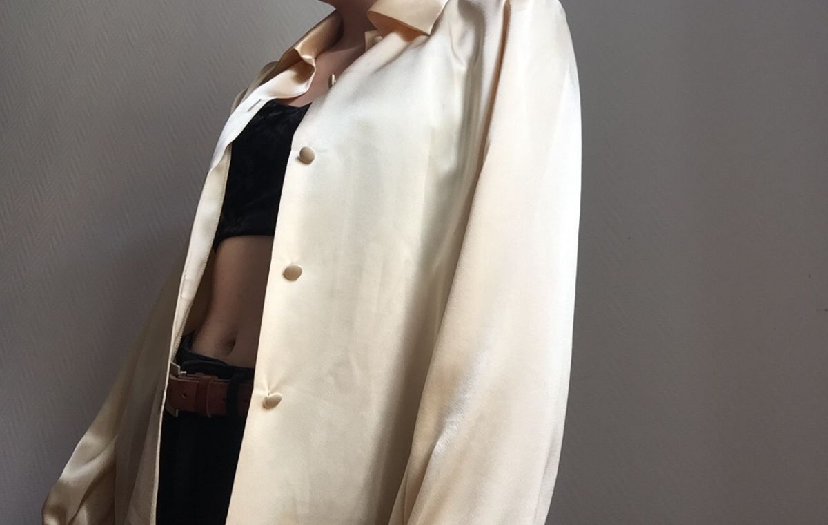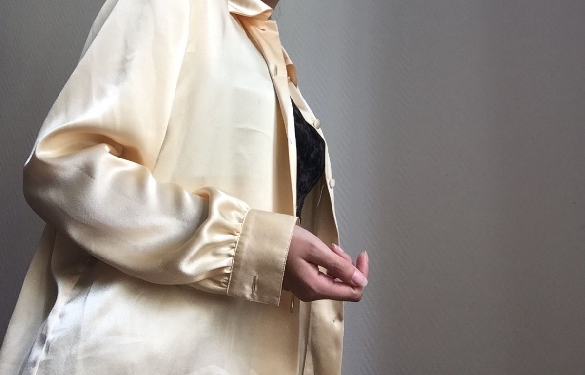 Chemise PIERRE BALMAIN Uniformes en soie. La couleur change selon la lumière mais reste orangée pale.