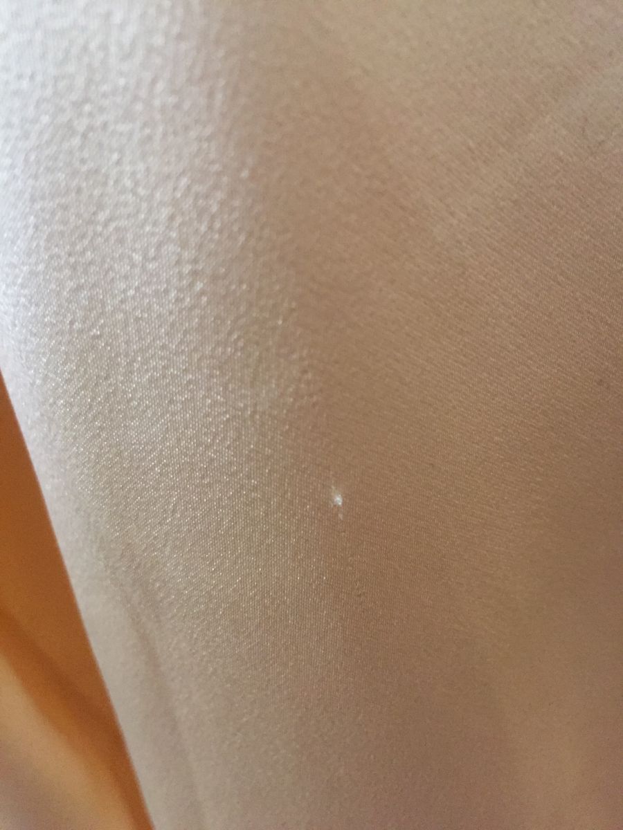 Il y a un petit accro vers le bas et quelques toutes petites tâches qui ne se voient que de très près.
