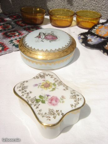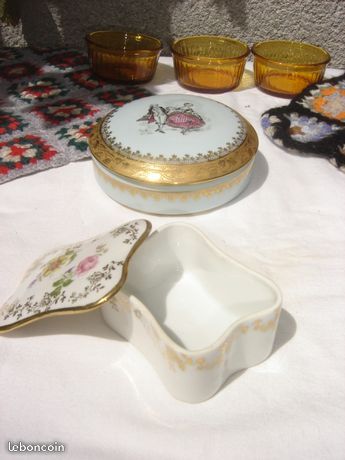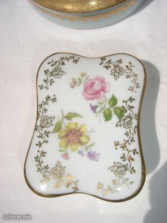Pour info, j'ai l'autre coffret de même type EN LIMOGES (visible en arrière plan des photos) est aussi à vendre, je fais un prix à 30€ pour l'ensemble des 2.