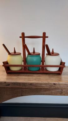 Pour info, j'ai aussi quelques autres plateaux (un en cuir, un ensemble de 3 s'encastrant en bois, un en métal CORSE vintage AUSSI, etc) entres autres choses...