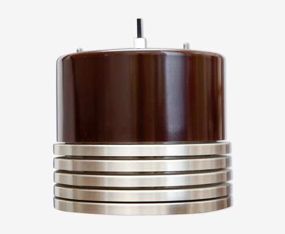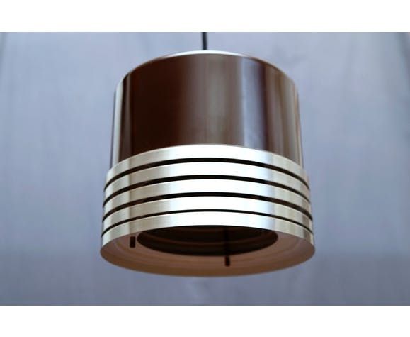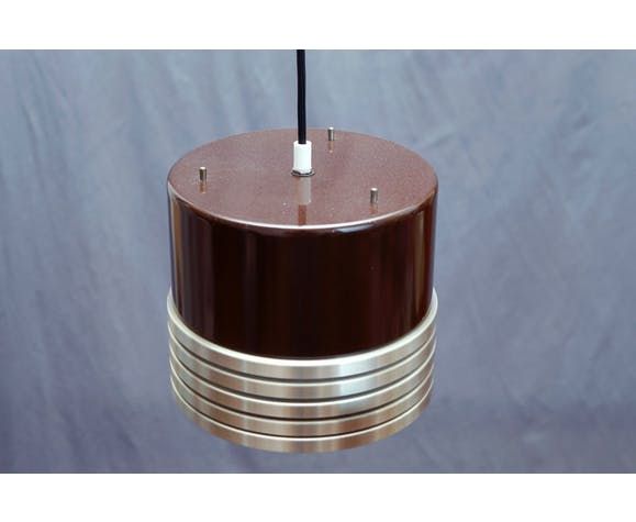 Lampe années 70 du Danemark en aluminium marron et argenté. Pour un décor rétro et vintage.