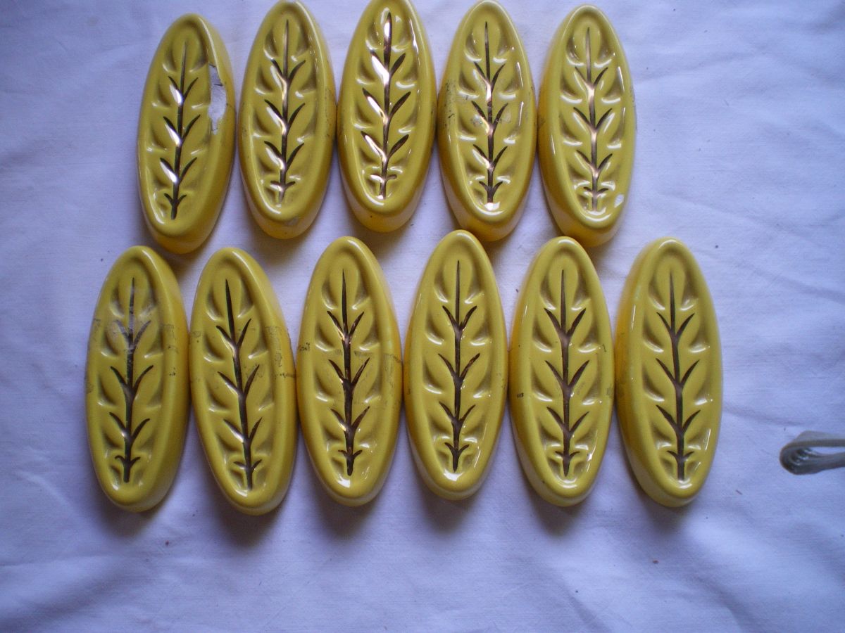 11 porte couteaux en céramique jaune (dont 3 malheureusement ébréchés)