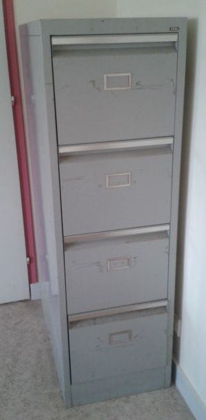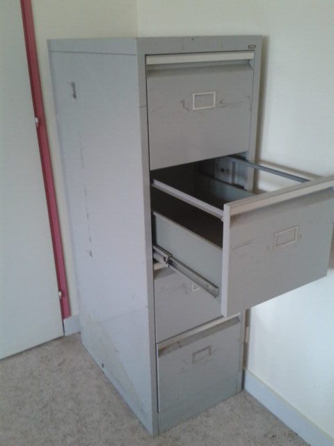 Meuble métallique 4 casiers en bon état datant des années 80. Les tiroirs fonctionnent impeccablement.