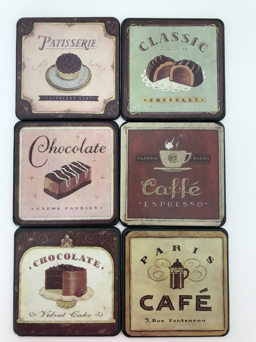 Lot de 6 dessous de verre avec leur présentoir.