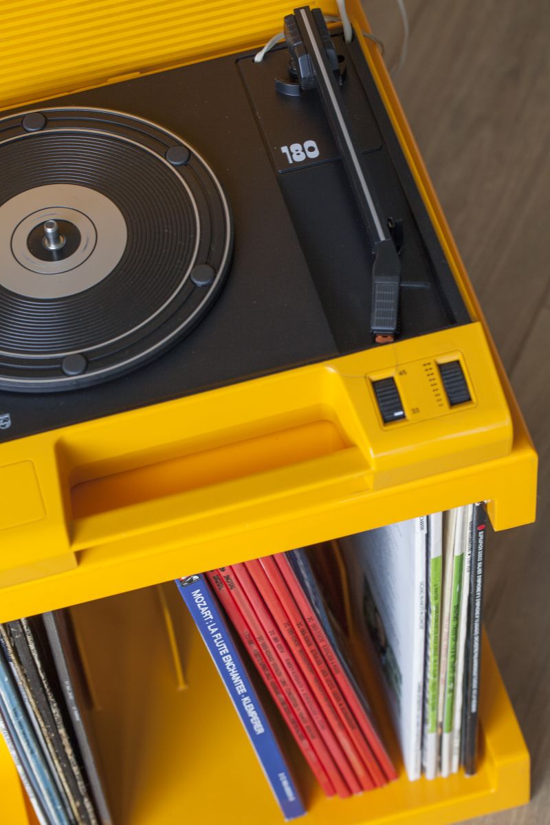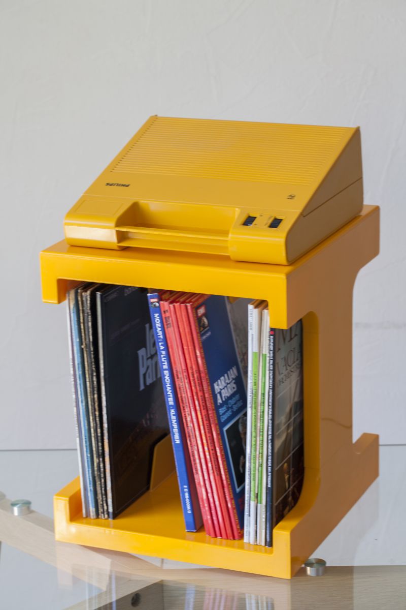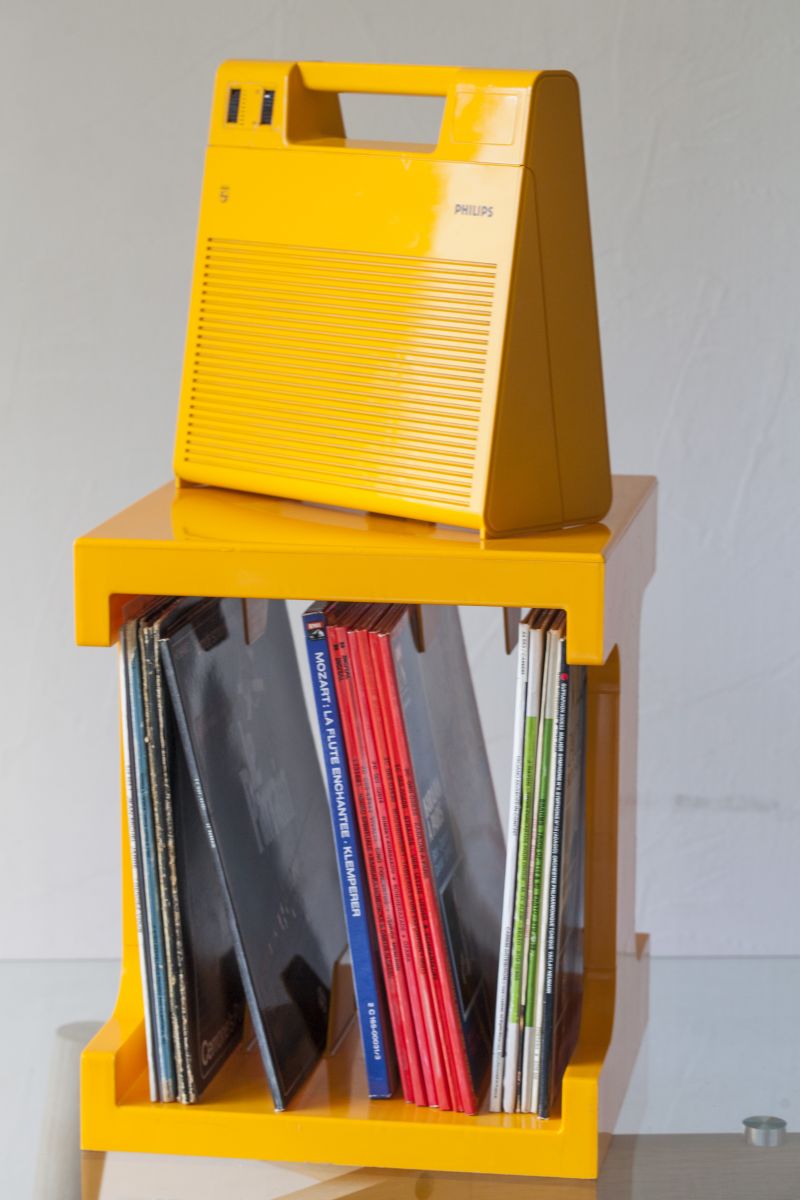 °° Un ensemble rare composé d'un tourne disque Philips 180 jaune + un meuble range vinyle jaune SOMM des 70s °°