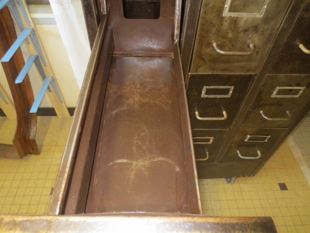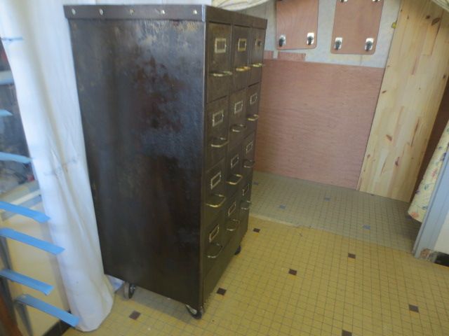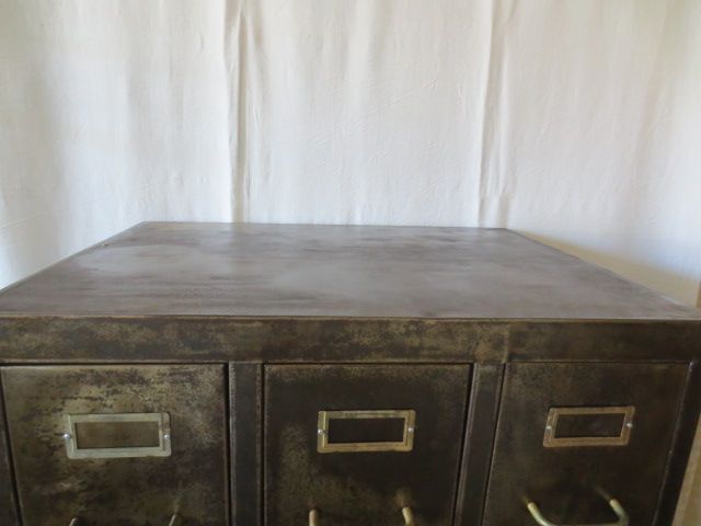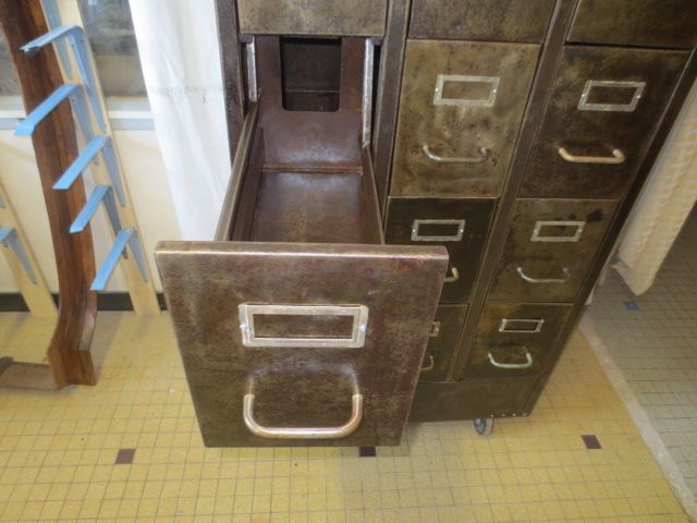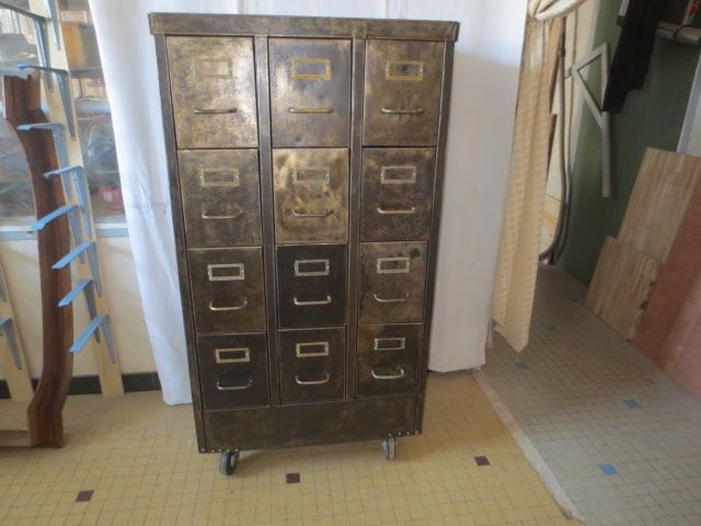 12 tiroirs avec porte-etiquettes et poignées en bronze d'origine