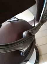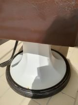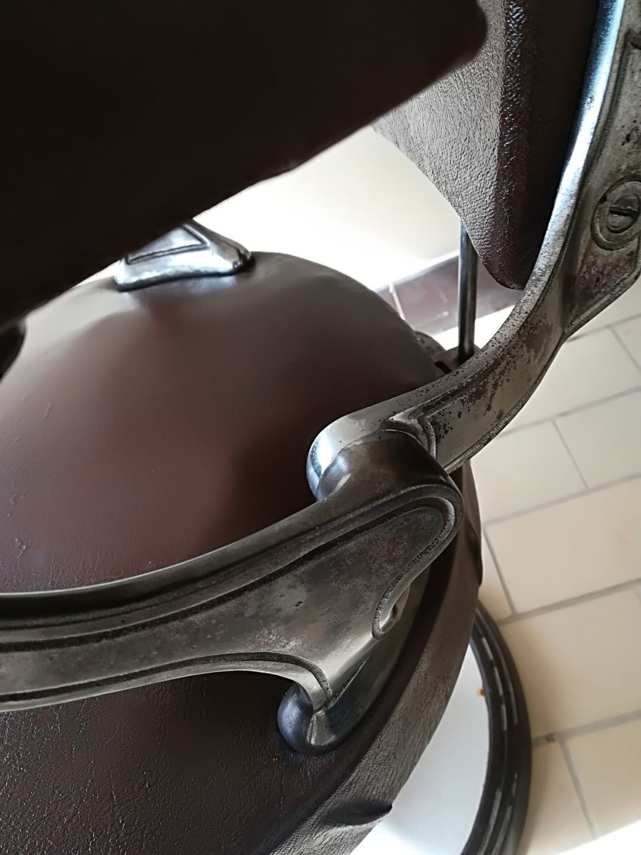 Tissu imitation cuir marron avec quelques marques d usure légères du revêtement.