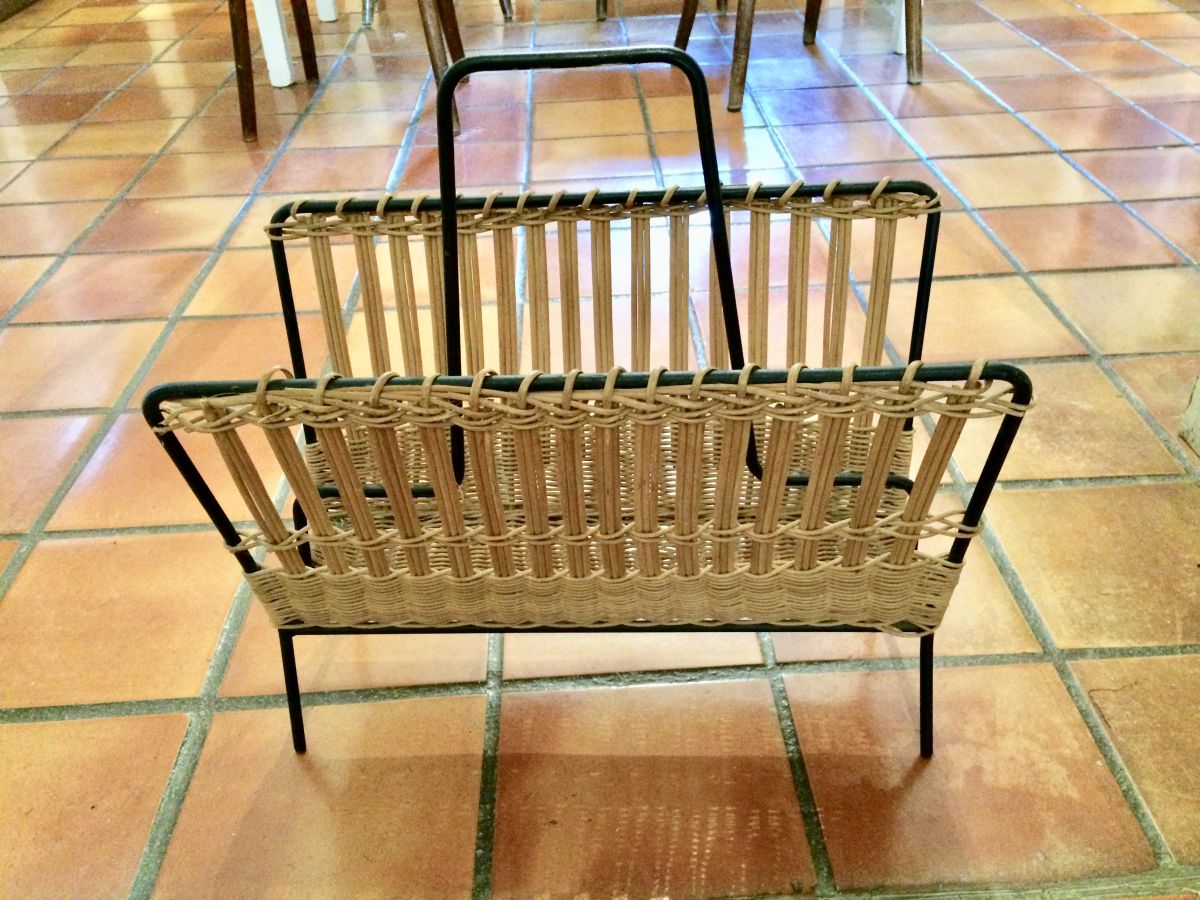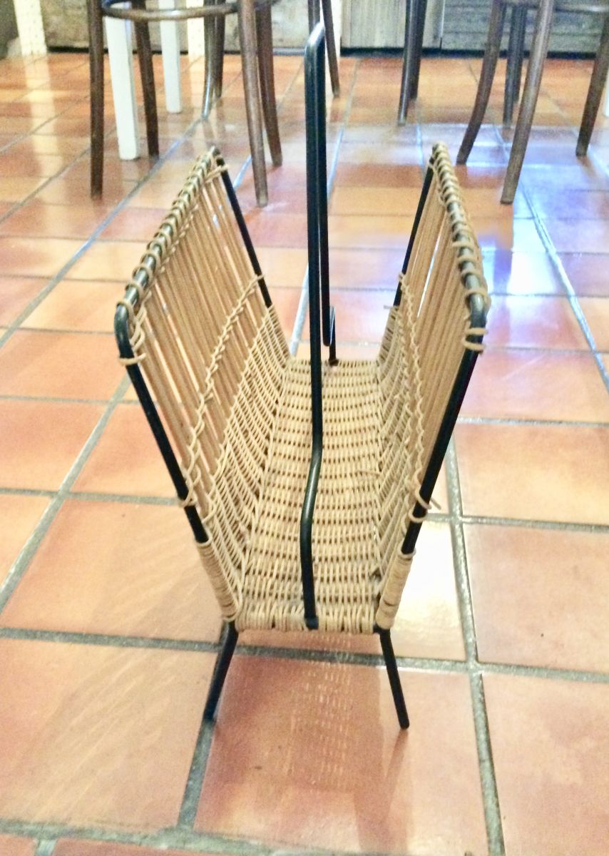 porte revue en rotin et metal.50cm de large ; poignée métal.