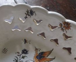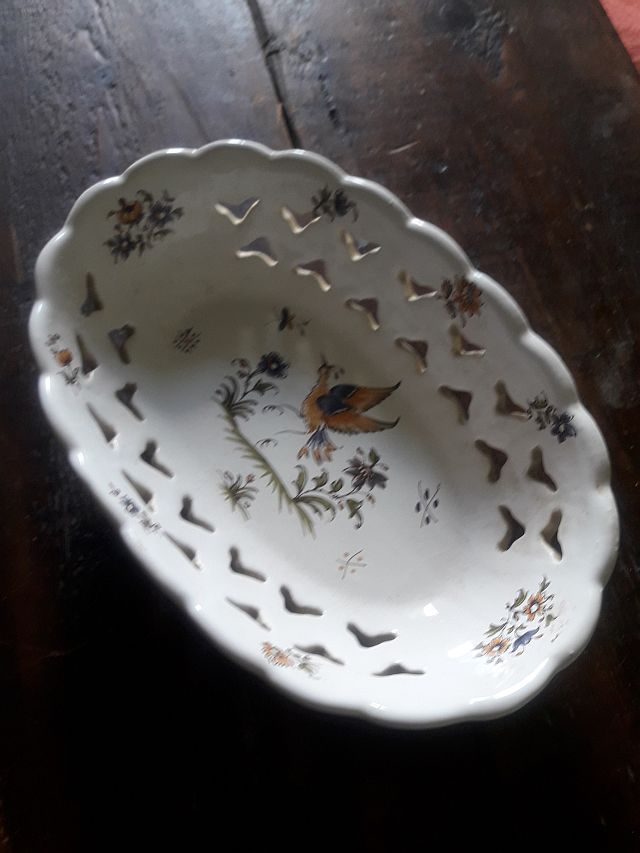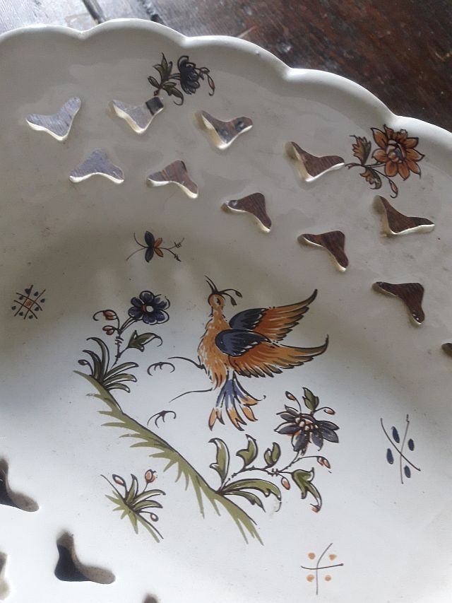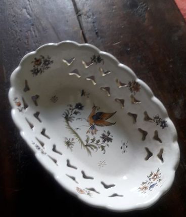 Panier ajouré faïence décors Mousrtier XVIIIe, France, décors oiseau