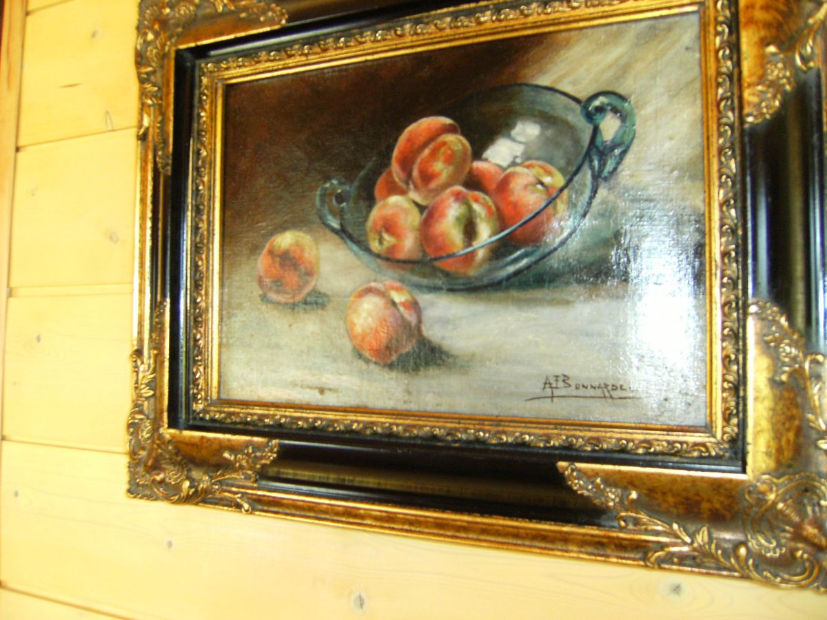 nature morte aux pêches thème cher a BONNARDEL peintre de l'école lyonnaise