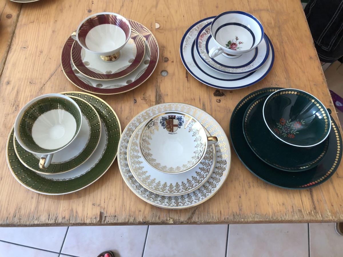 Votre lot de tasses à café m'intéresse beaucoup. J'en ai déjà deux de la même forme et je vois là l'aubaine d'agrandir la famille. Est-ce que les vôtres sont toutes (tasses, assiettes et soucoupes) en parfait état ?