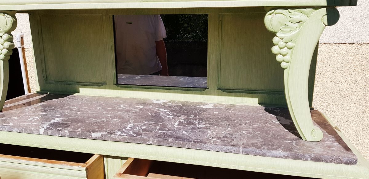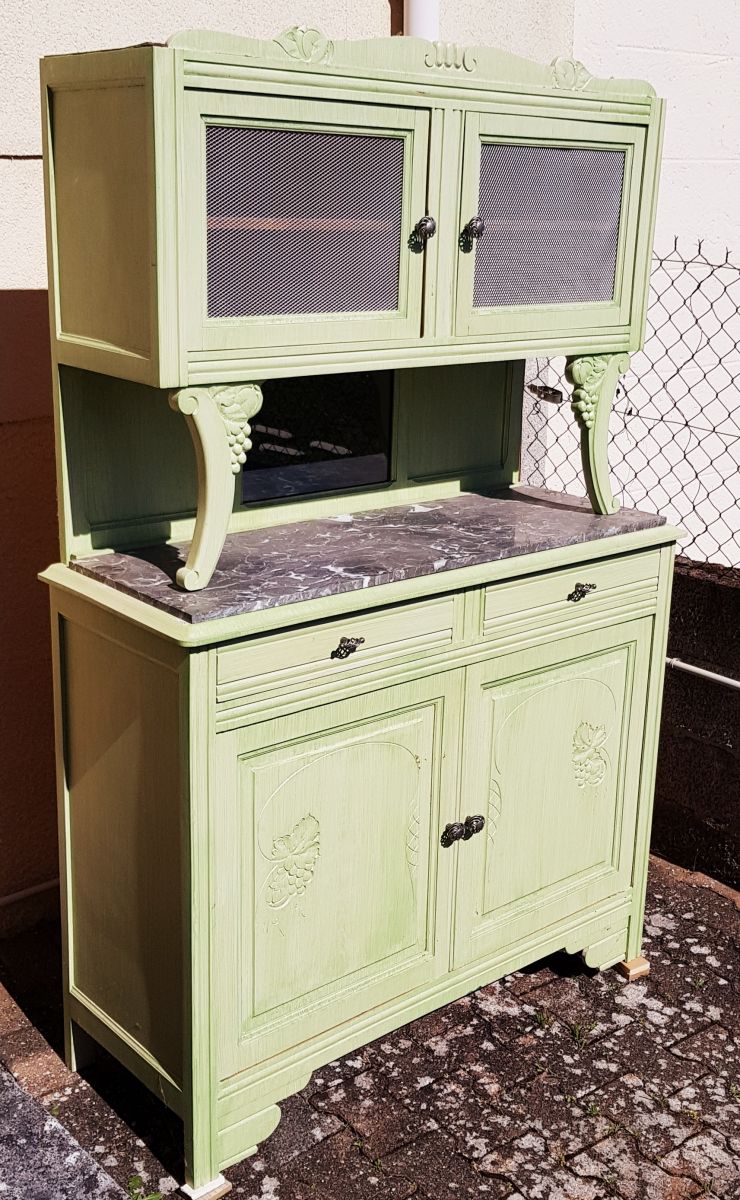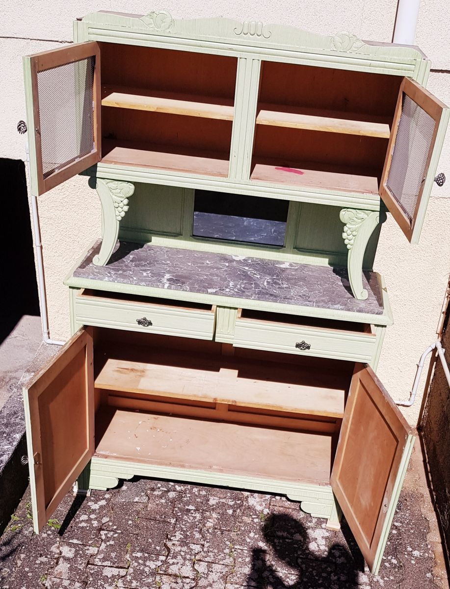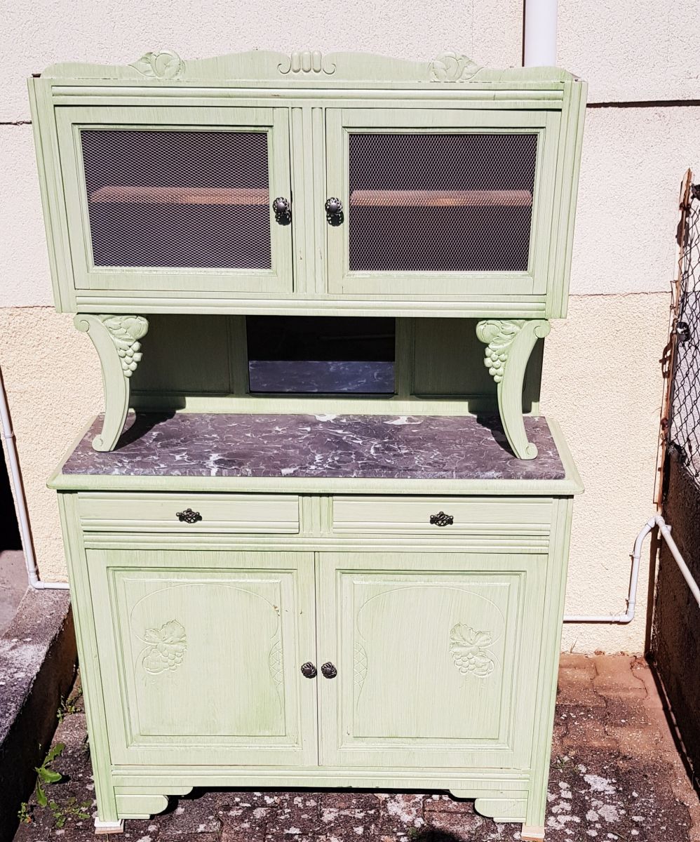 Très beau petit buffet - vaisselier année 30 en pin entièrement repeint .