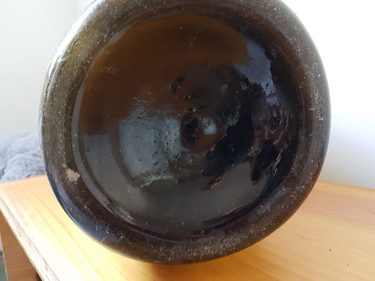 Imposante bouteille 18ème, ambrée, H:57 cm, diamètre: 19cm, contenance : 16,5 Litres .
