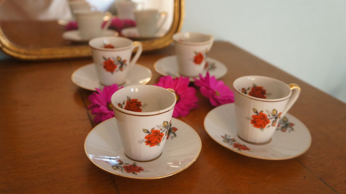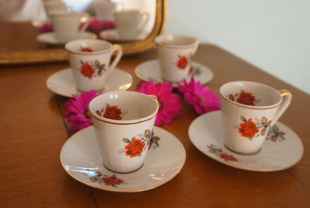 Set de 4 jolies petites tasses à café Bavaria + coupelles. Environ 6cm de hauteur