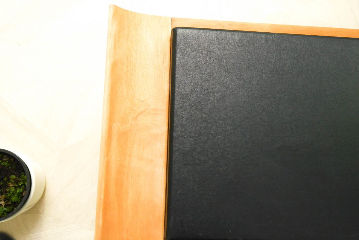 A noter : la hauteur du banc est légèrement plus basse que les assises standard. Le ponçage est légèrement irrégulier et le vinyle comporte des petites traces du temps. Son charme, lui, reste intacte !