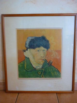 Grande reproduction du célèbre tableau de Van Gogh intitulé Autoportrait à l'oreille bandée ou L'Homme à la pipe.