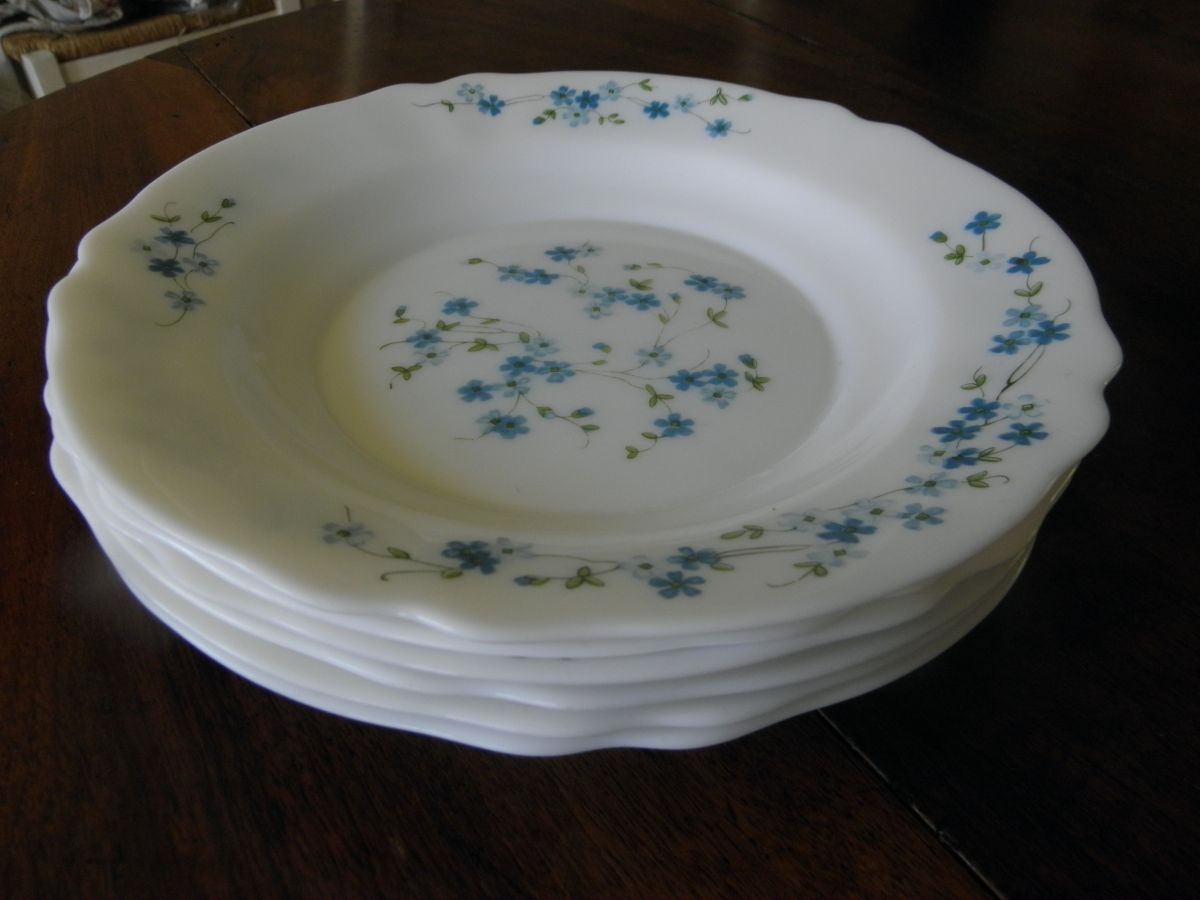 Lot de 6 assiettes creuses myosotis Véronica Arcopal vintage