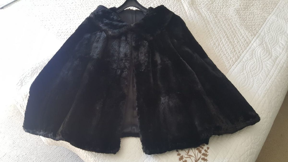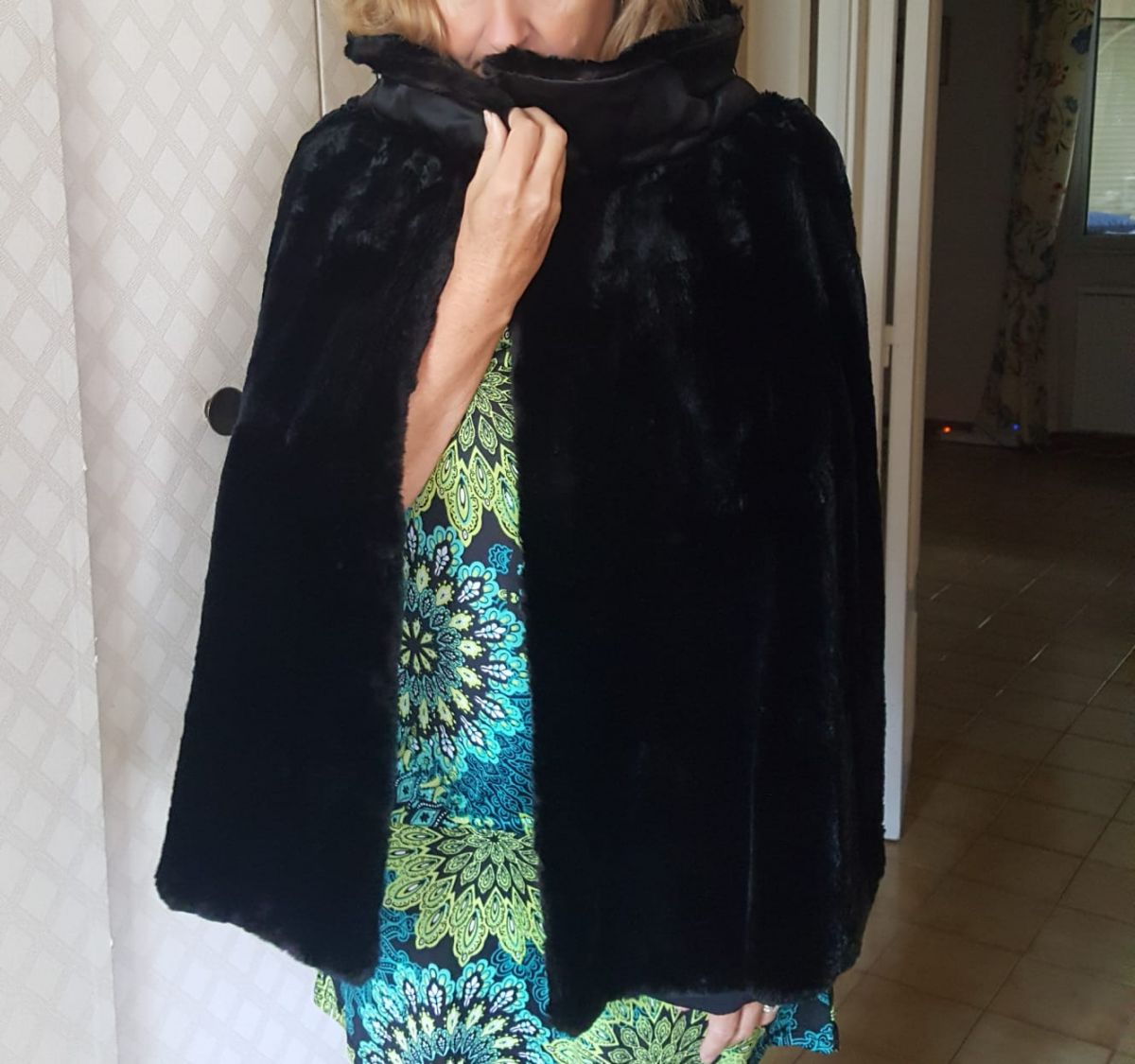 Cape noire très douce et très agréable à porter que mon arrière grand mère a très peu utilisée (réservée aux sorties à l'Opéra ou au théâtre et portée sur une robe longue).