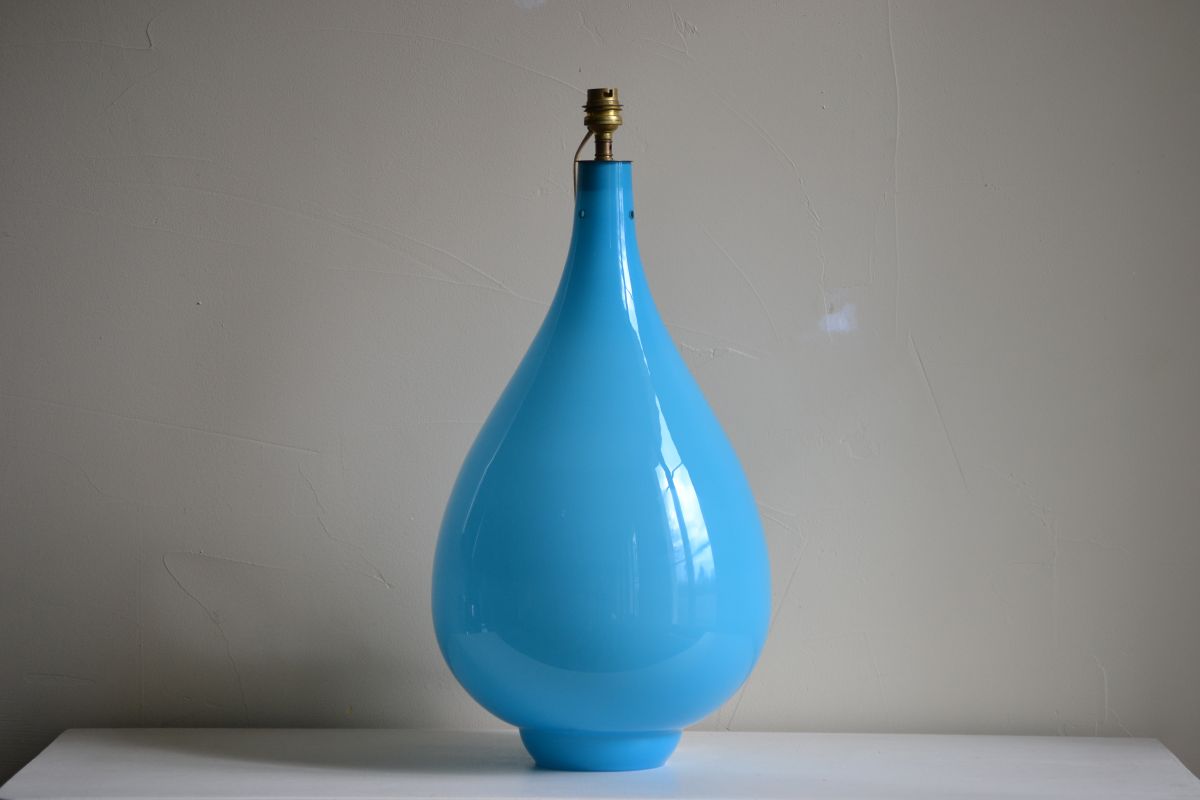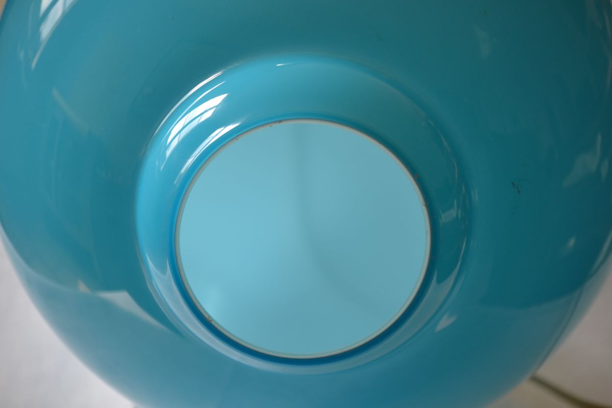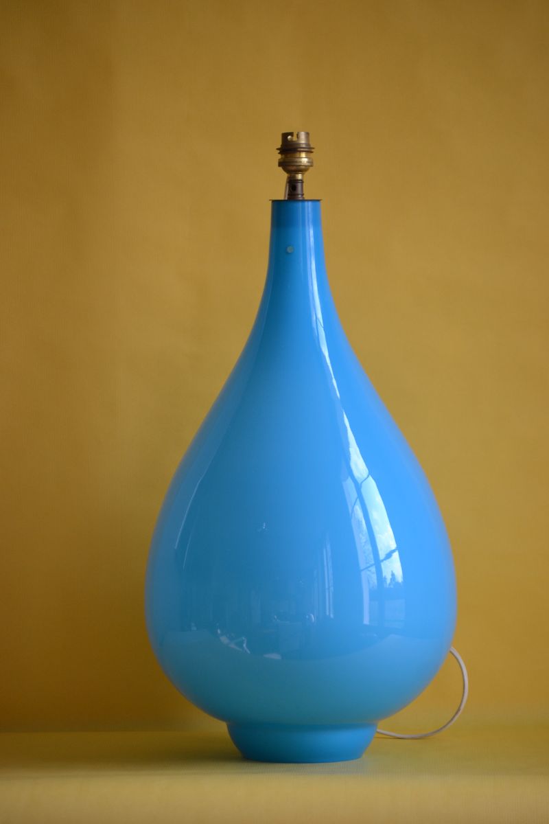 Très belle Opaline. Ancienne suspension en opaline bleu turquoise. En forme de goutte.Dans une seconde vie, elle a été transformé en lampe avec une électrification douille à baïonnette d'époque. Sa grande hauteur, son design fin et élancé en font un objet extrêmement élégant qui peut trouver sa place au sein de tout style de décoration. Juste posé sur un meuble ou en laissant libre cours à votre imagination, peut inspirer toutes sortes de transformation. Sa couleur bleue est très lumineuse et envoûtante. Peu importe la place que vous lui réserverez, elle sera un point de lumière qui accrochera à coup sur le regard.