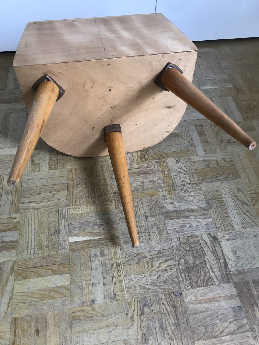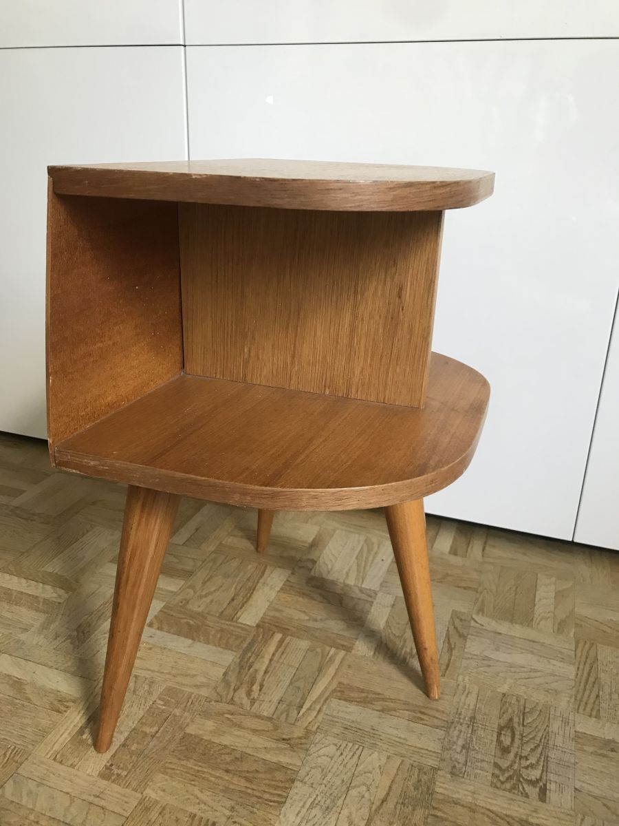 Belle Allure Vintage pour cette table de chevet tripode aux pieds compas effilés.