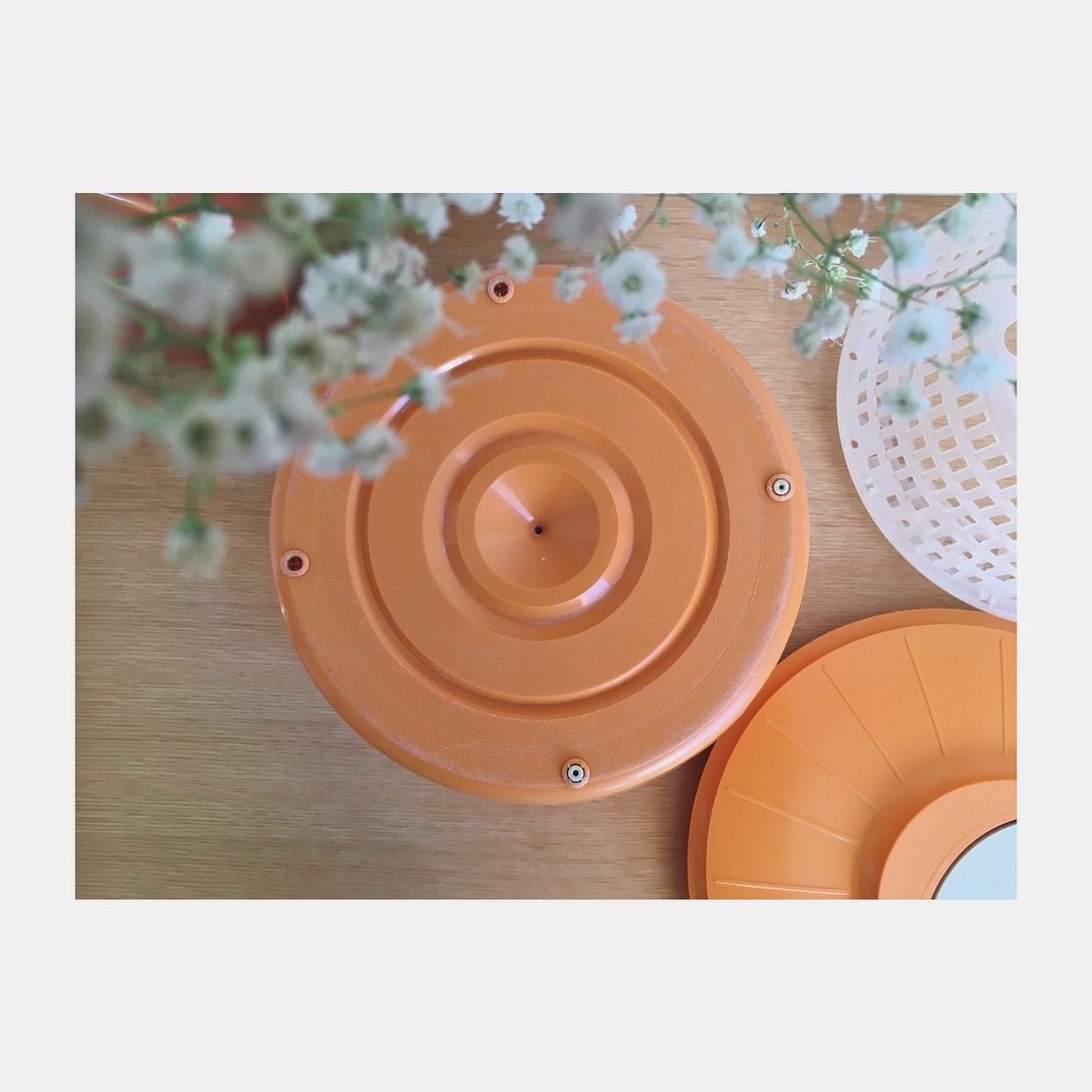 Cette essoreuse à salade dans son revêtement orange fait revivre de jolis souvenirs.