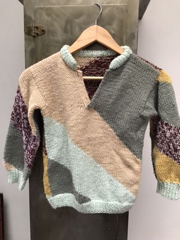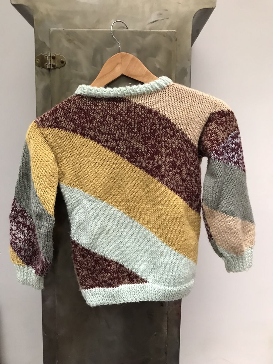Pull tricoté main, laine, enfant entre 5 et 8 ans.