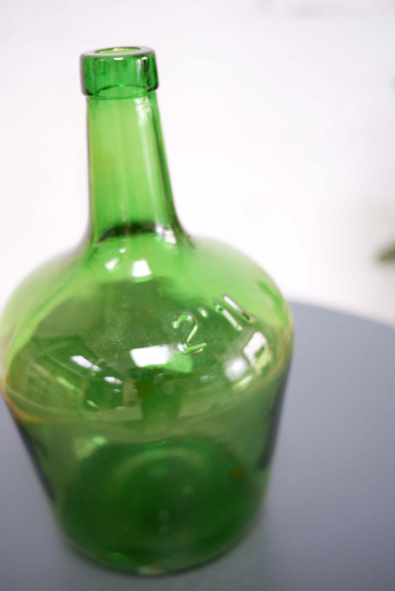Voici une jolie dame jeanne vintage vert bouteille de 2 Litres.