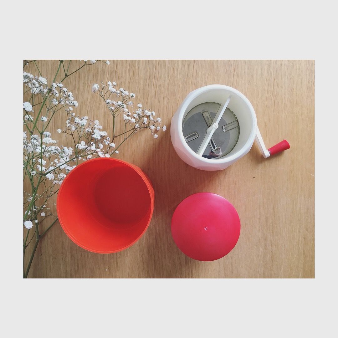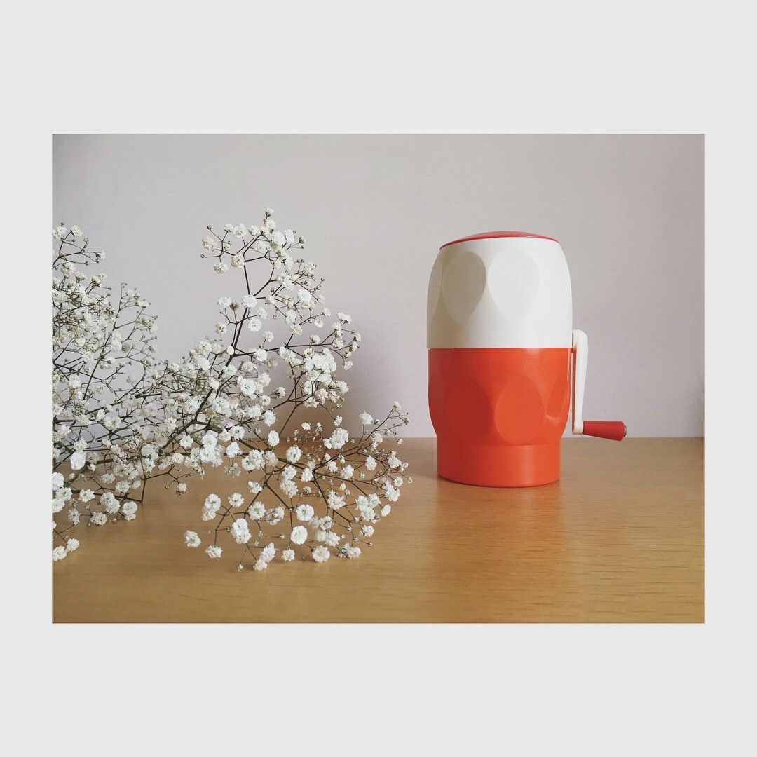L'été n'est pas fini, les températures sont encore au rendez-vous, aussi, pour se désaltérer, on continue dans la couleur orange et les matières plastiques avec ce broyeur à glace en bel état.