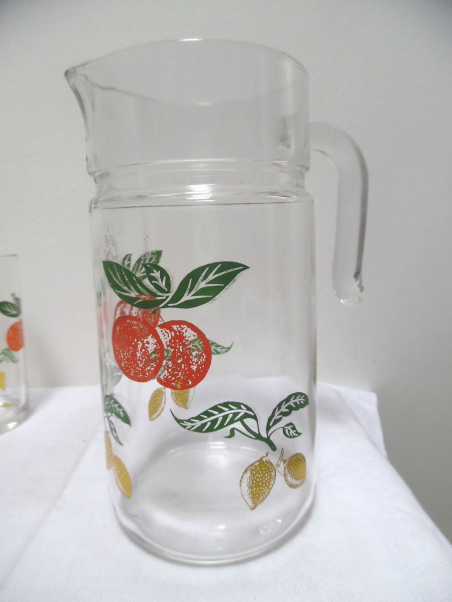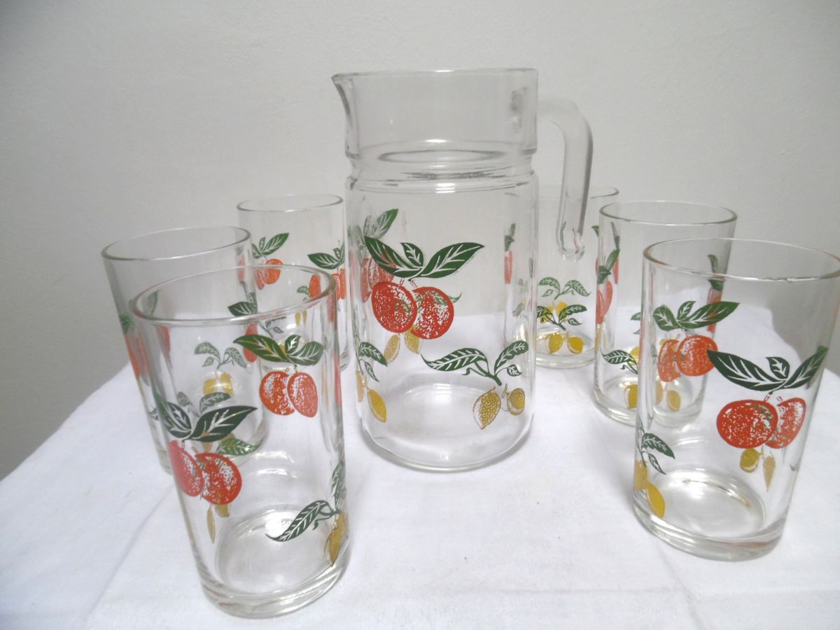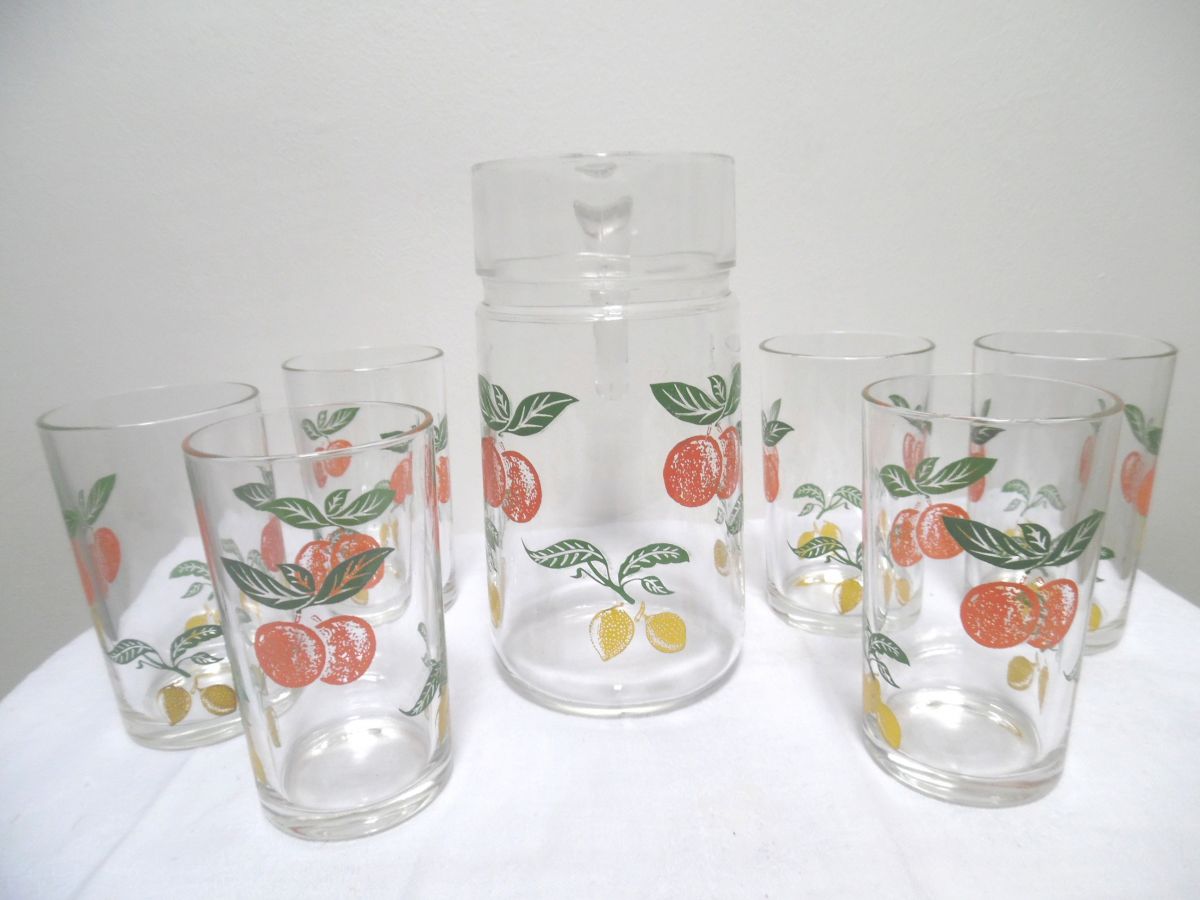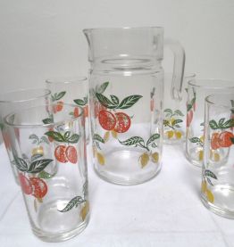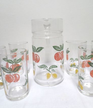 joli service à orangeade ,pichet et six verres ,il est encore temps d'égayer vos tables..