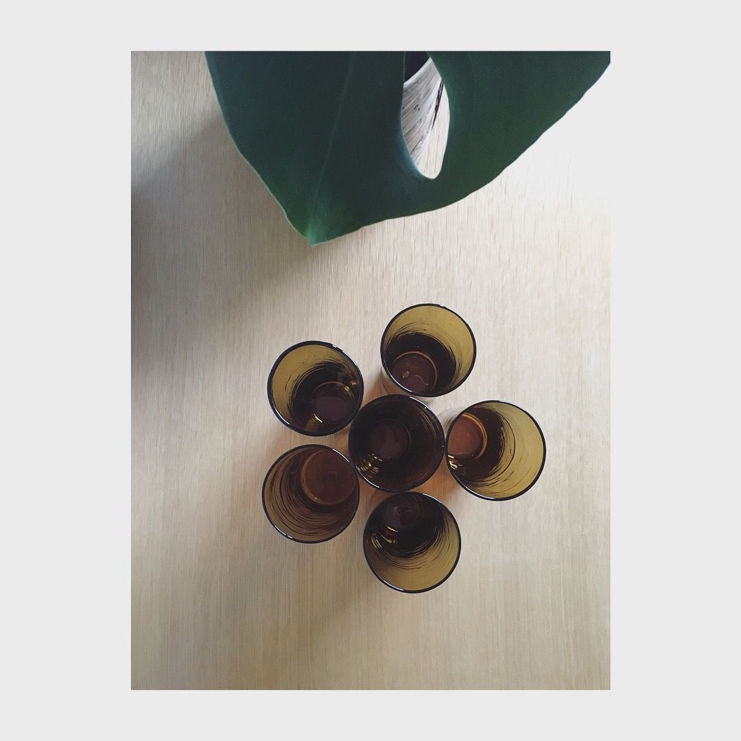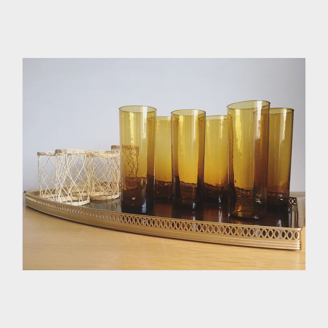 Service à orangeade en verre soufflé ambré