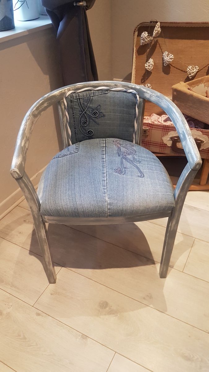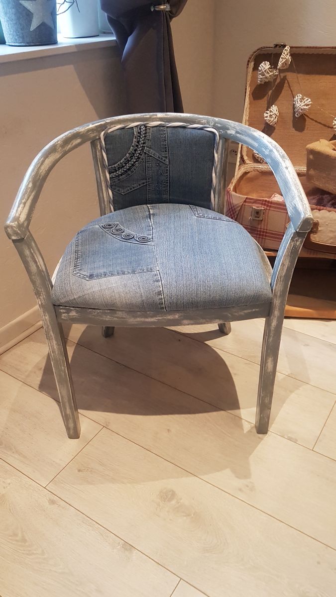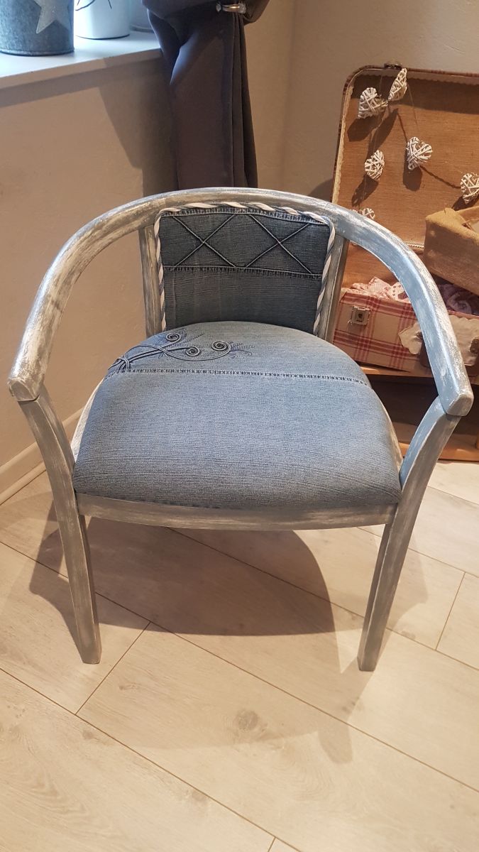 Les assises et les petits dossiers ont été entièrement refaits, mousse pour les assises et dacron pour les dossiers, tapissés avec du jean recyclé.