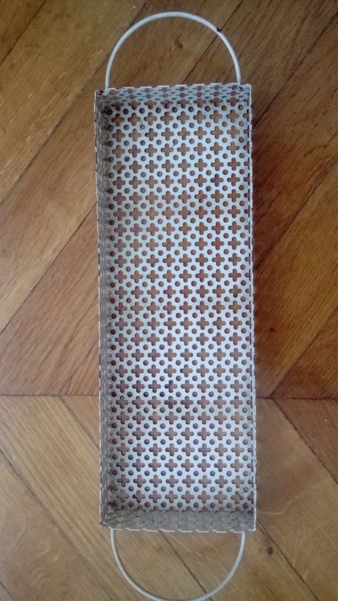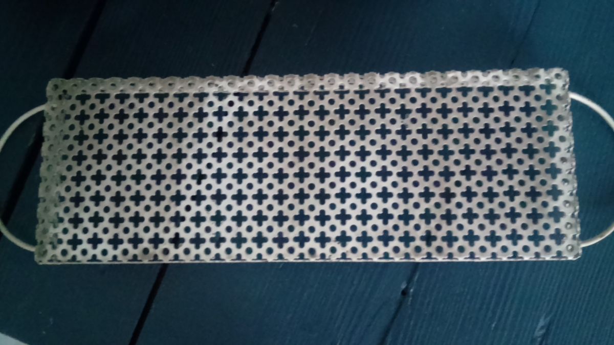Plateau rectangulaire années 50 Mathieu Matégot en métal blanc.