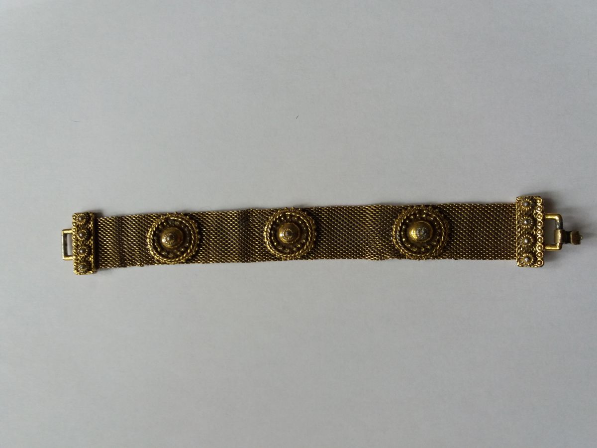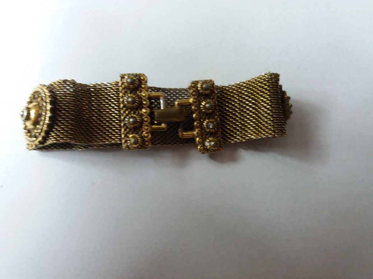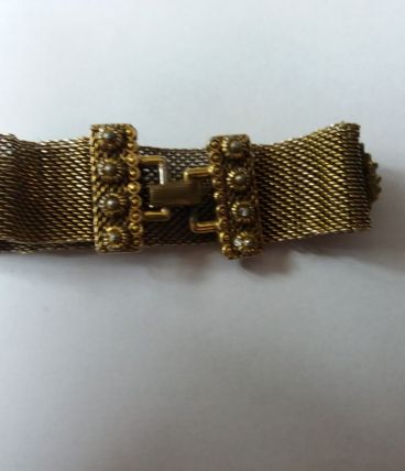 Bracelet vintage années 50 à mailles dorées en très bon état.
