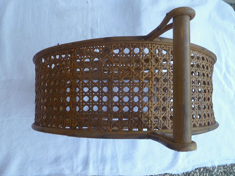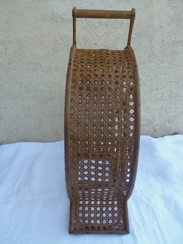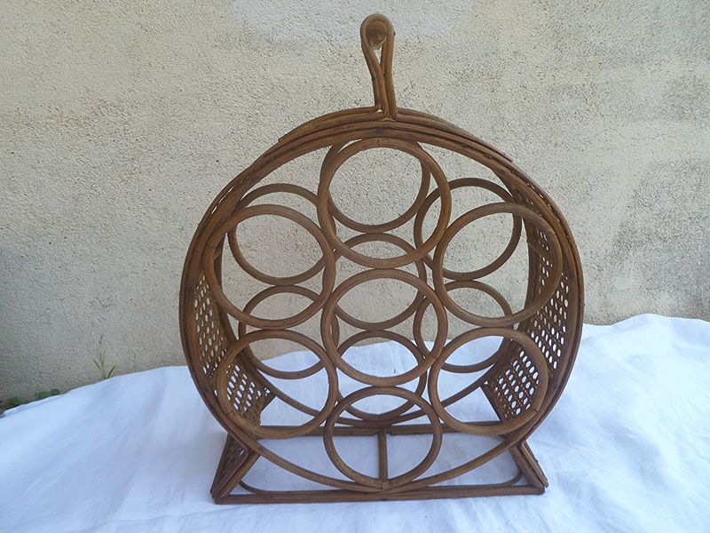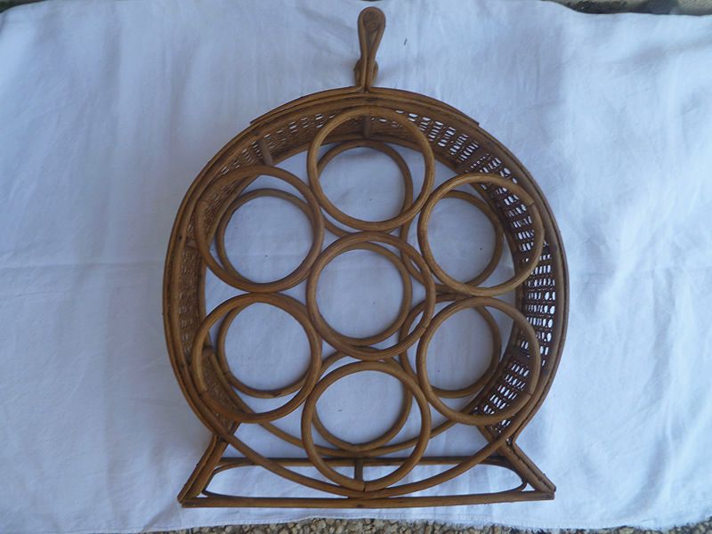 porte bouteilles vintage en rotin avec cannage sur la circonférence