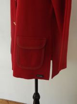 Poche plaquée de chaque côté et fermée par un rabat,gansée de tissu rouge