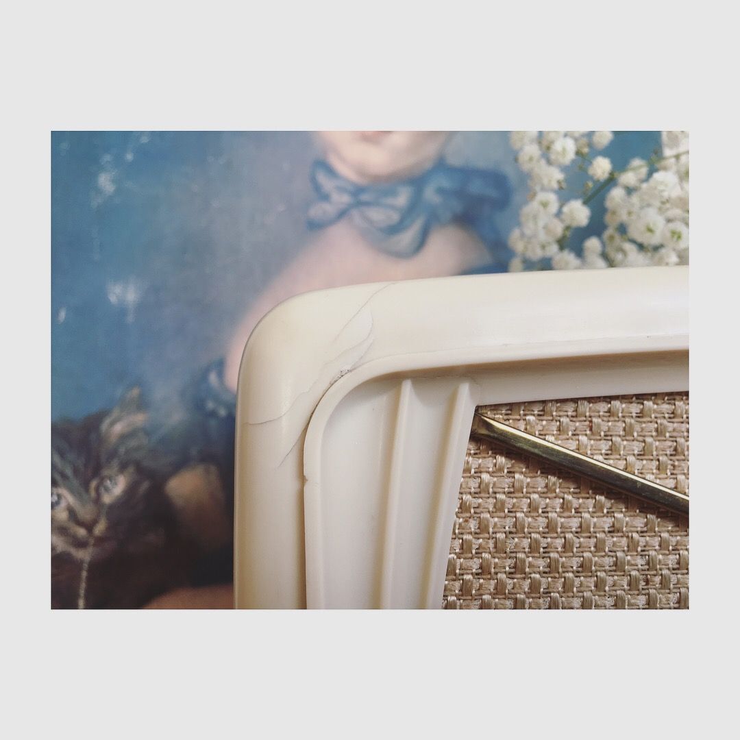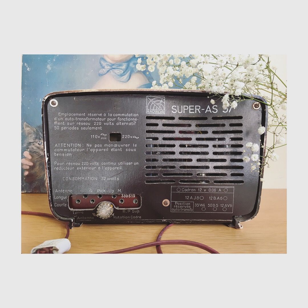 Un adorable poste radio TSF Radialva en bakélite de couleur ivoire. Il date de 1956-1957. Hormis deux blessures sur les épaules (faire défiler les photos), le petit monsieur se porte bien esthétiquement.