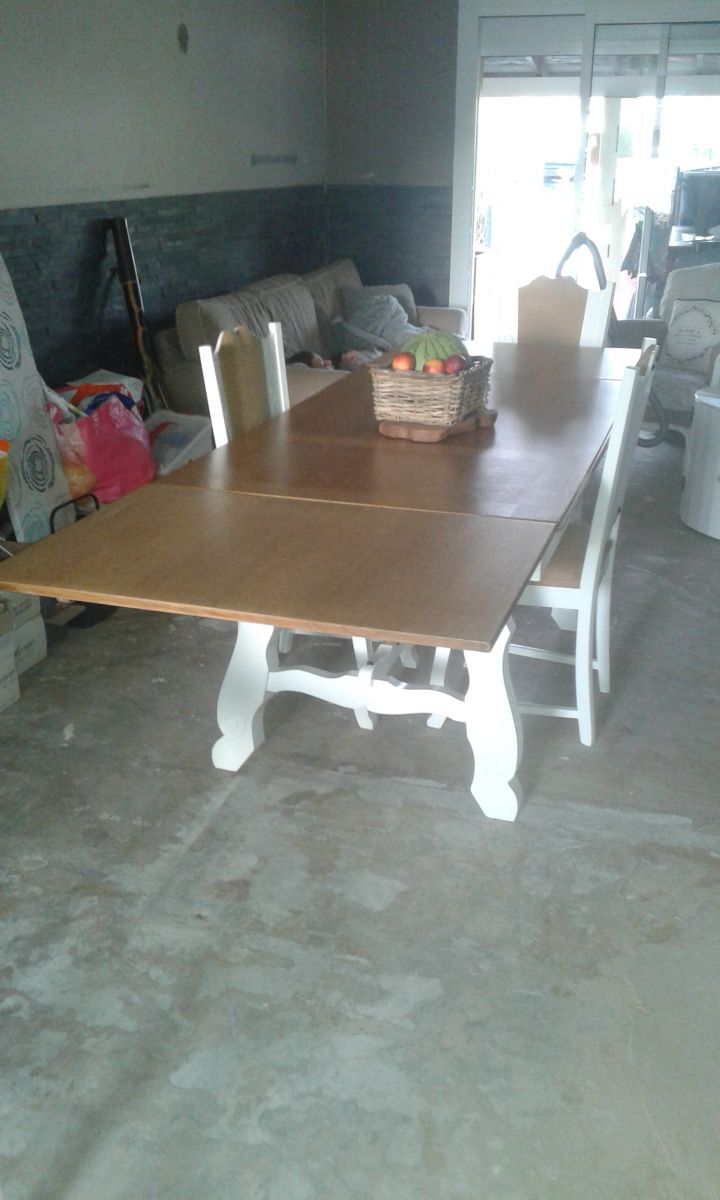 Table de salle a manger bois et blanche avec 2 rallonge