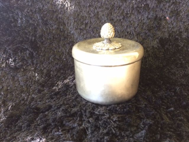 petite boite en métal argenté de 10 cm de diametre environ
