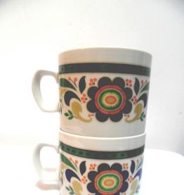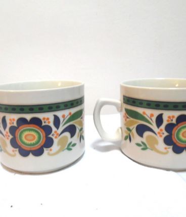 joli duo de tasses pour petit déjeuner année70,de faïence,italienne.