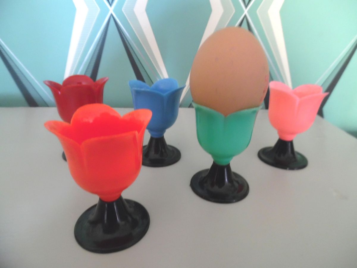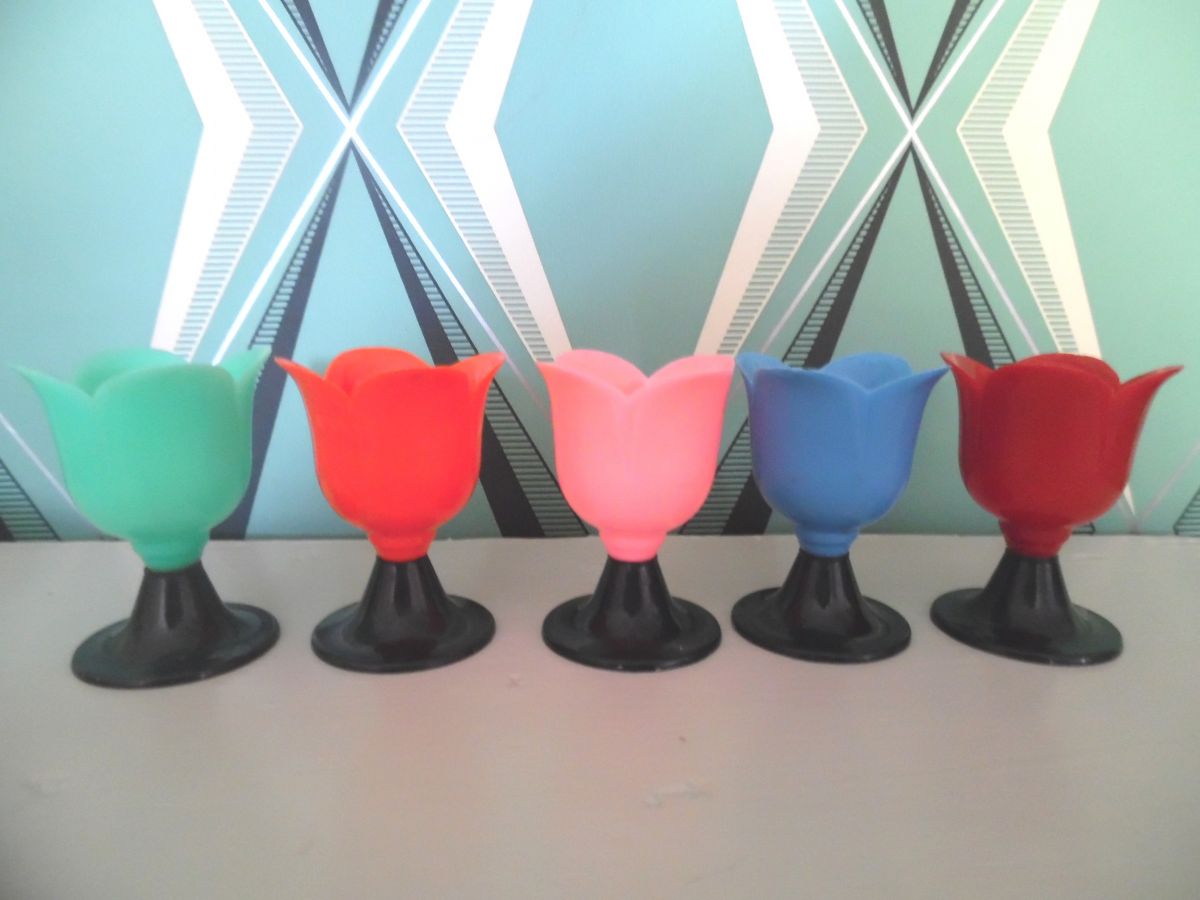 cinq jolis coquetiers tulipe ,des années 70,jolie couleurs, de quoi égayer vos repas..