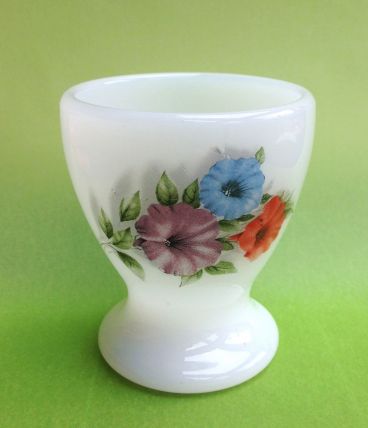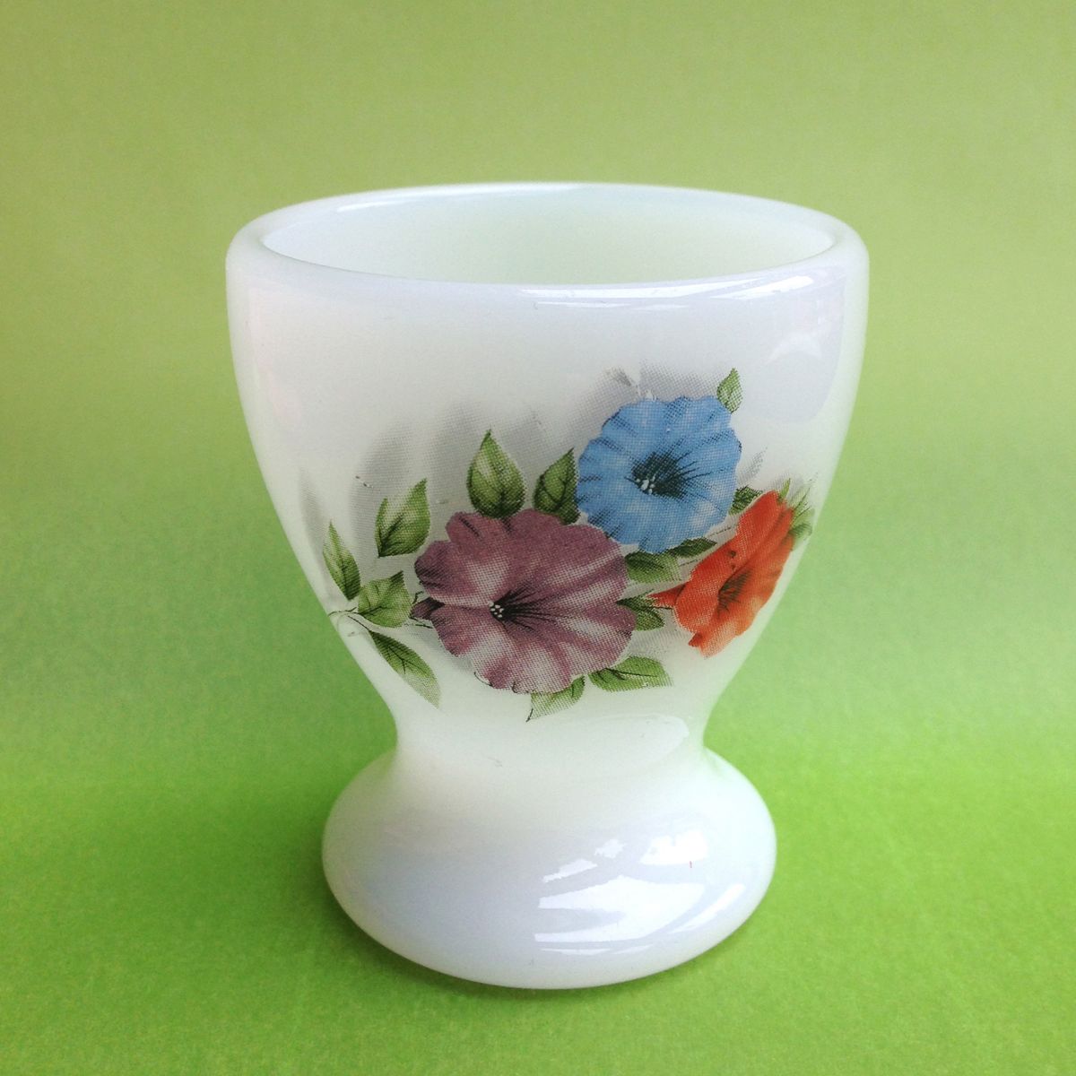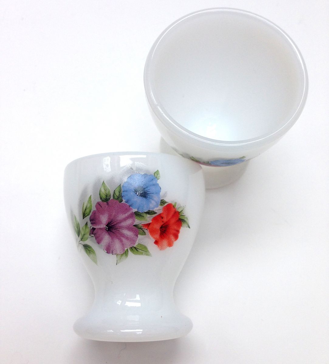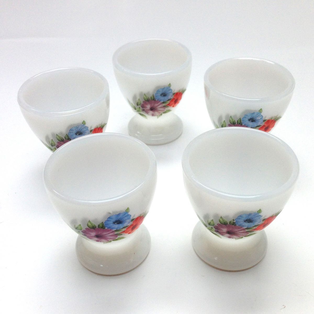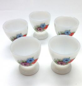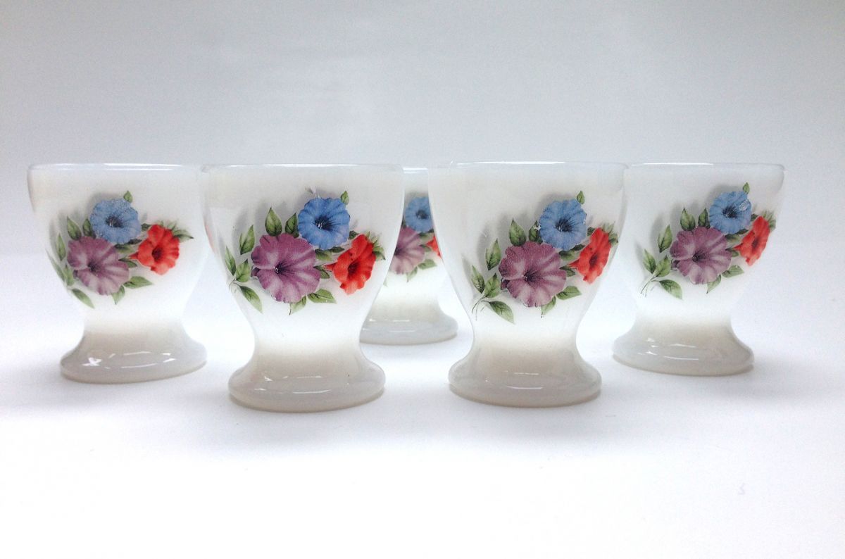 5 coquetiers Arcopal, années 70. Motif fleur liseron. Bon état.