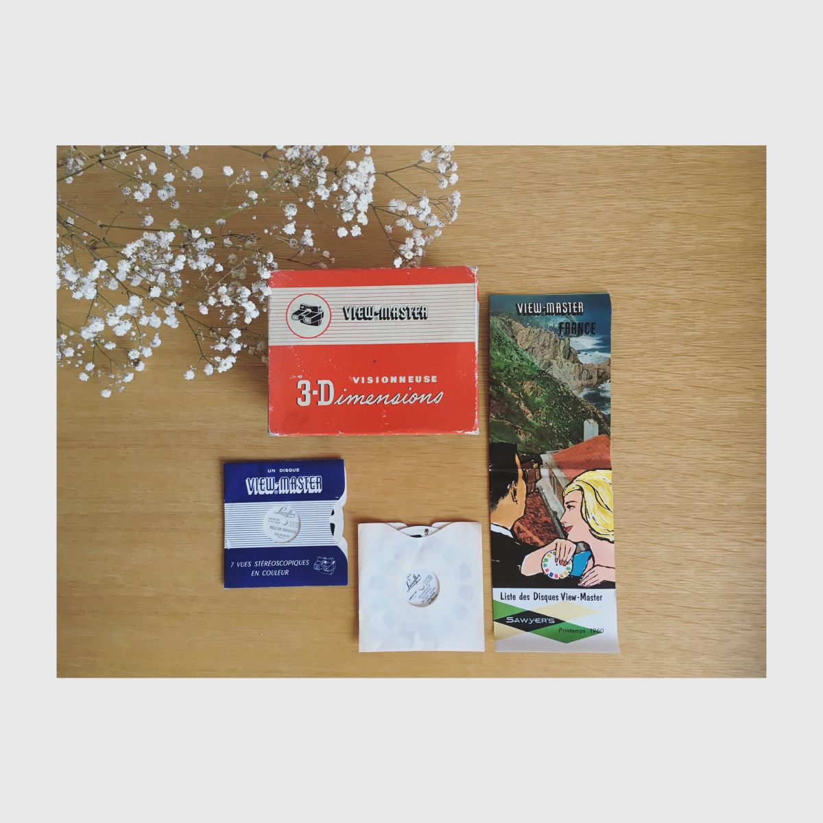 En très bel état, il s'accompagne de sa boite, de deux disques et d'une notice listant les différents types de view-master et la collection de disques.