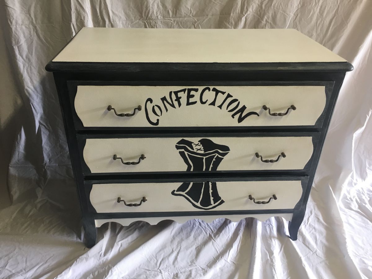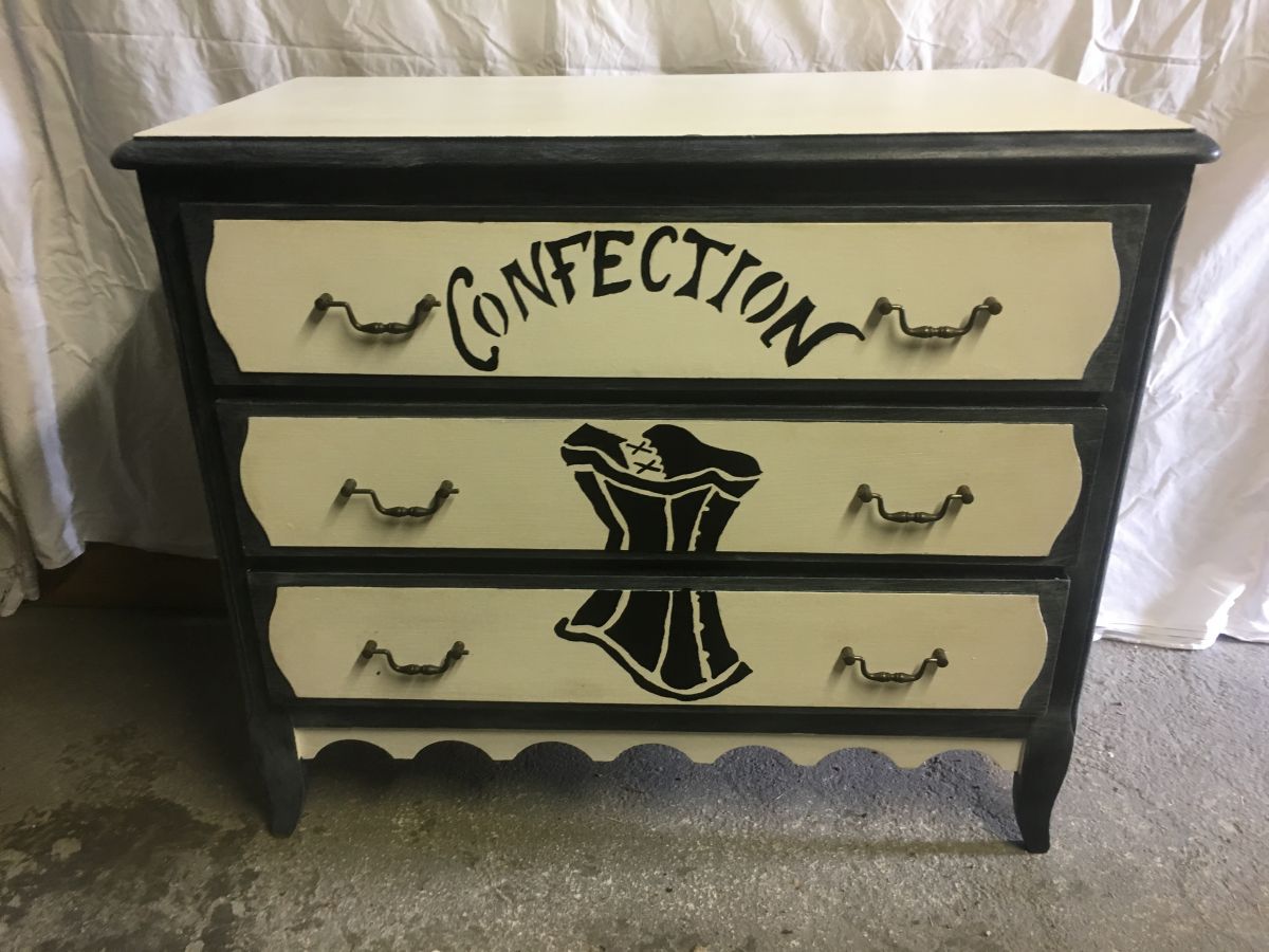 COMMODE EN BOIS MASSIF .style ancien 3 tiroirs grande capacité rénovée entièrement ... pour nouveau look .. poncée .sous couché finition noire et blanche protection anti tache ... dimension : longueur 91 cm Hauteur 79 cm Largeur 46 cm ... idéal dans une chambre ou salle de bain... livraison possible dans 77 ou 94 forfait 20 €